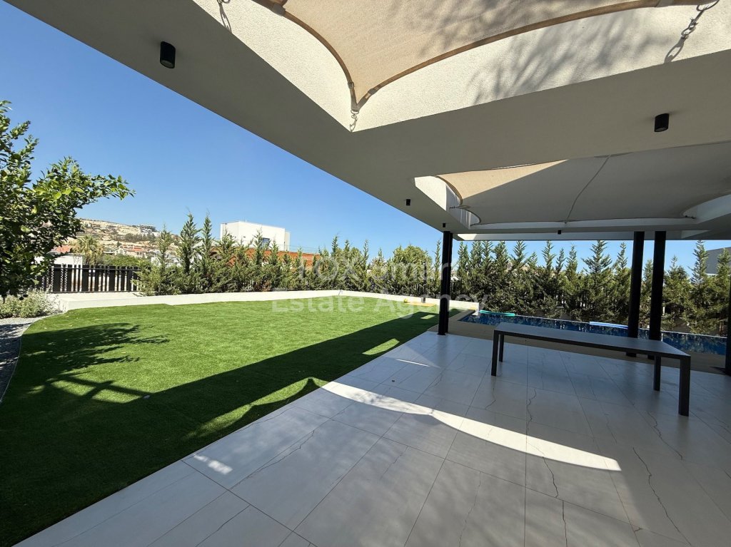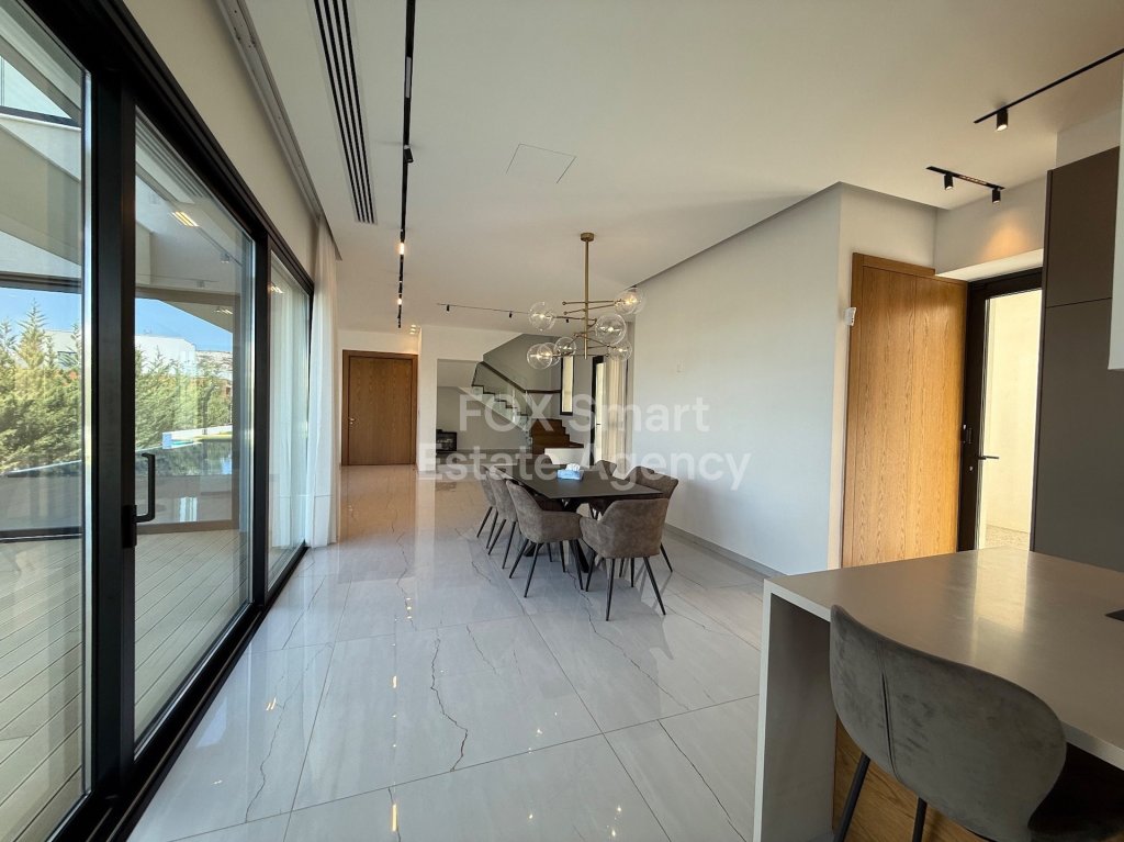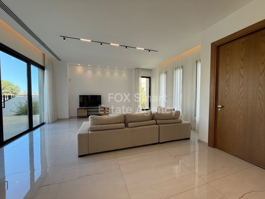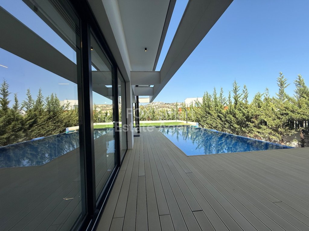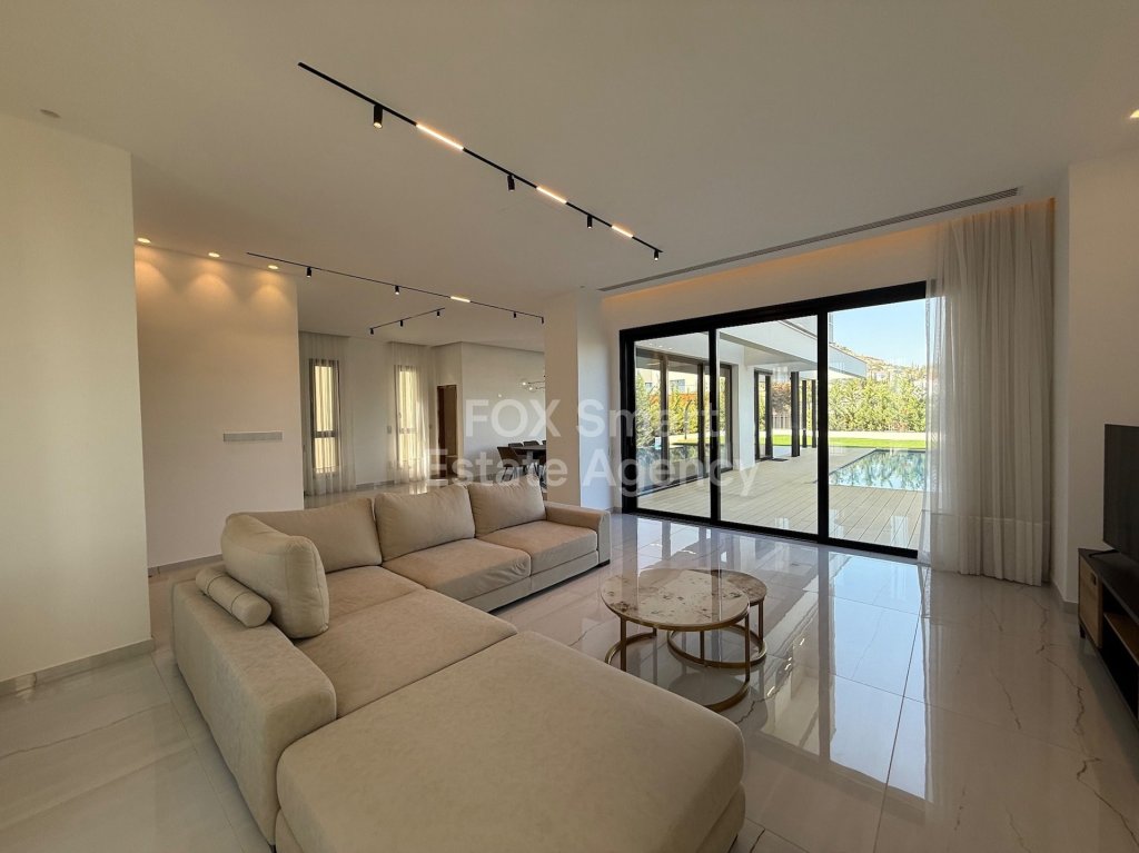 This outstanding property is in the sought after location of Agios Tychonas.All bedrooms are en suite. Master with walk in wardrobe.Maids quarter.Modern fully equipped kitchen with island bar, comfortable sitting/dining/lounge areas, high ceilings with patio doors accessing the gardens and the overflow swimming pool.Guest wc, landscaped gardens, covered parking, fully a/c throughout, under floor heating, secure gated entry to the house.The highest quality throughout with no expense spared.