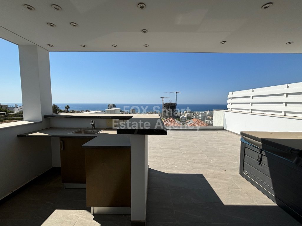 On the rooftop, residents can enjoy a relaxing jacuzzi while taking in panoramic views of the sea and surrounding area. The property also includes a large swimming pool in the garden, perfect for cooling off on hot summer days.