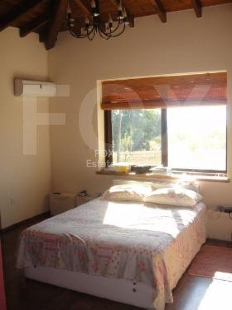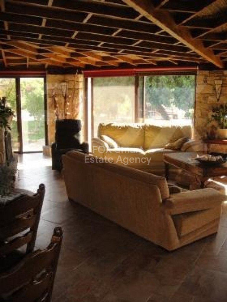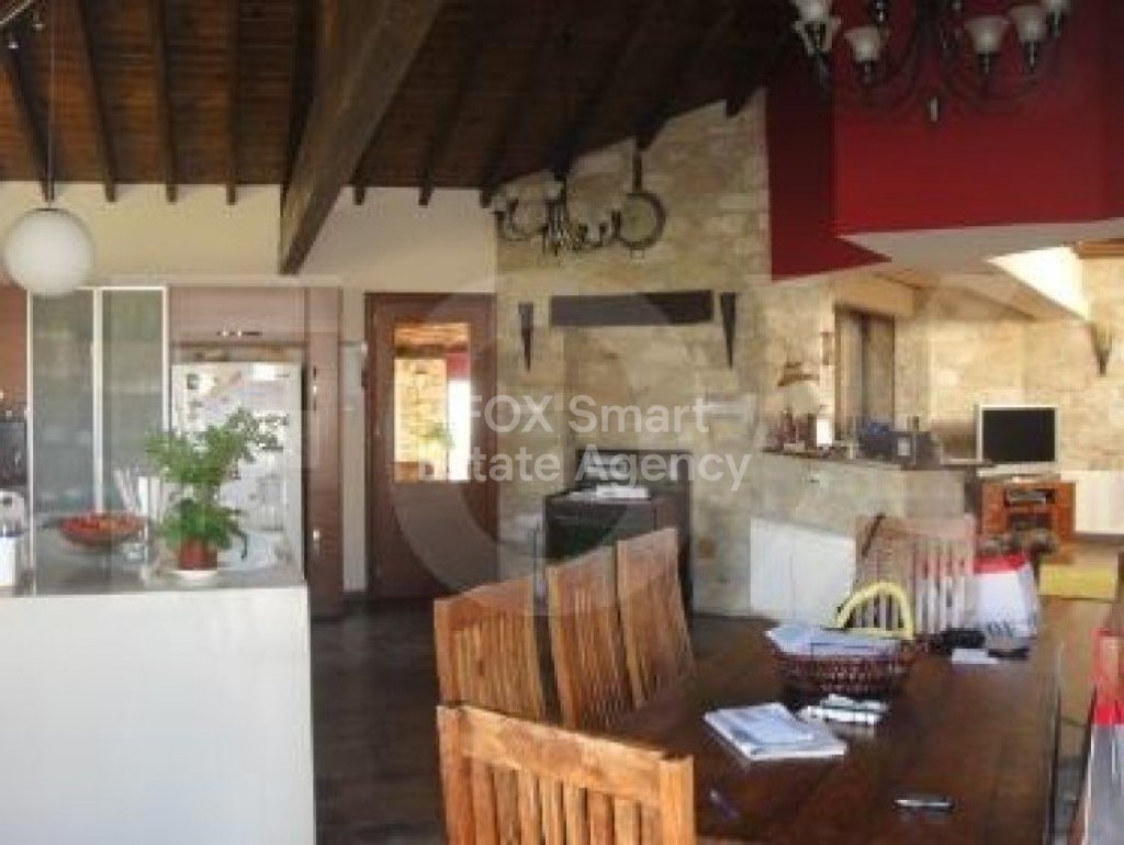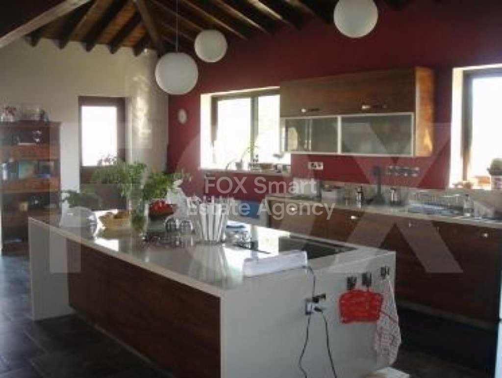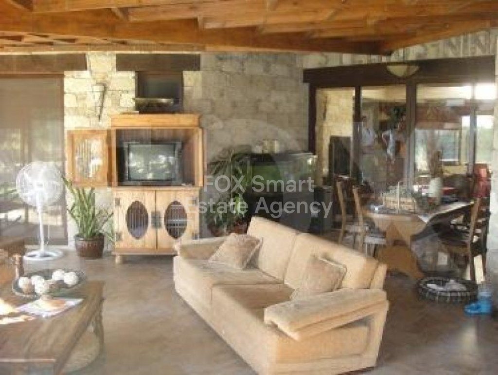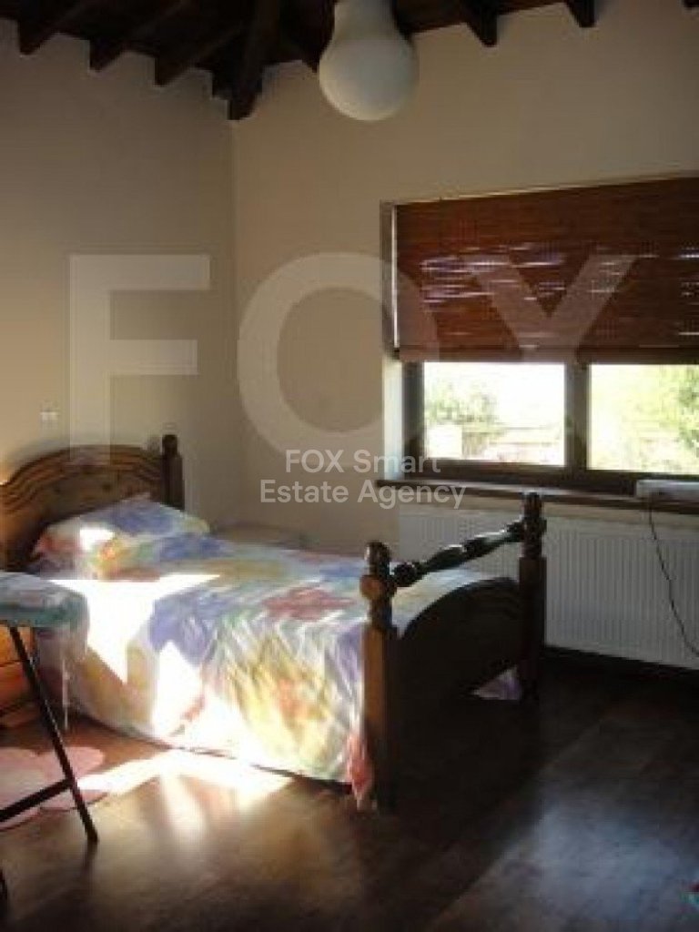 This beautiful stone built 4 bedroom bungalow is built on a mountain top in the quiet village of korfi, only 15 minutes drive from Limassol. On a plot of 3,600 m2 there is a swimming pool with external shower and w/c, beautifully mature gardens, vegetable patch, a garage of 40 m2 and barbeque area. internally the house has been built with a cottage feel with wooden beams on the ceilings and stone walls. There is a loft room which can be used as an office or extra bedroom, and each bedroom comes with an en suite shower or bath. There is central heating throughout the house and a fire place in the conservatory. The kitchen is fitted with all the electrical appliances and all furniture shall remain in the house. This house has to be seen to be appreciated.