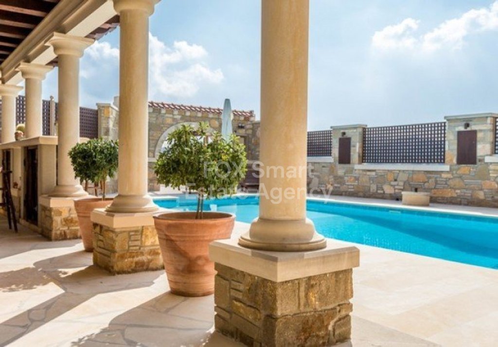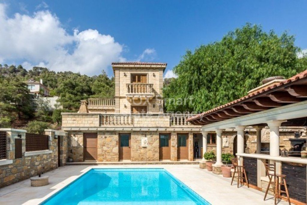 A lovely villa in excellent condition in the sought after village of Moniatis amongst pine tree forests.The villa is custom built to the highest standards with insulation of 8cm thick stone and full energy efficient.Size of plot 825 sqm ( option to buy the plot next to the house of a further 3,000m², size of villa 300 sqm , cover verandas 14 sqm , uncovered verandas 44 sqm , cover parking for two cars 60 sqm , kiosk for swimming pool 70 sqm and also bore hole available.There are four bedrooms , 4 bathrooms , two kitchens , storage room , living room , sitting room/dining room , two barbecue areas , swimming pool , full furniture , full air-conditions , central heating and Electrical appliances.