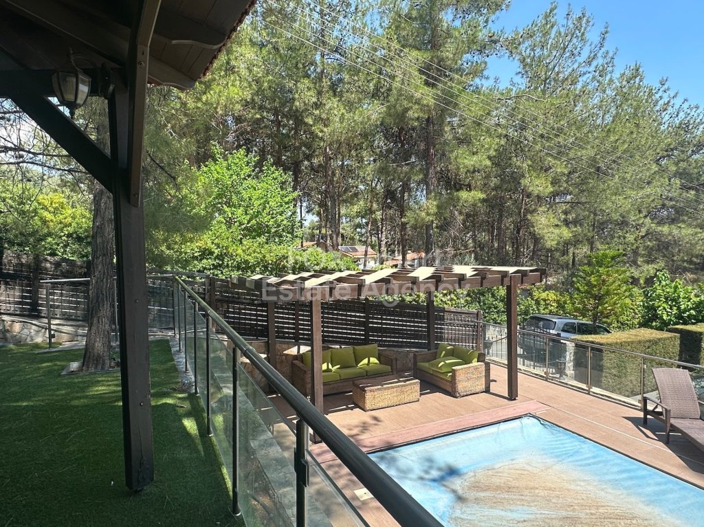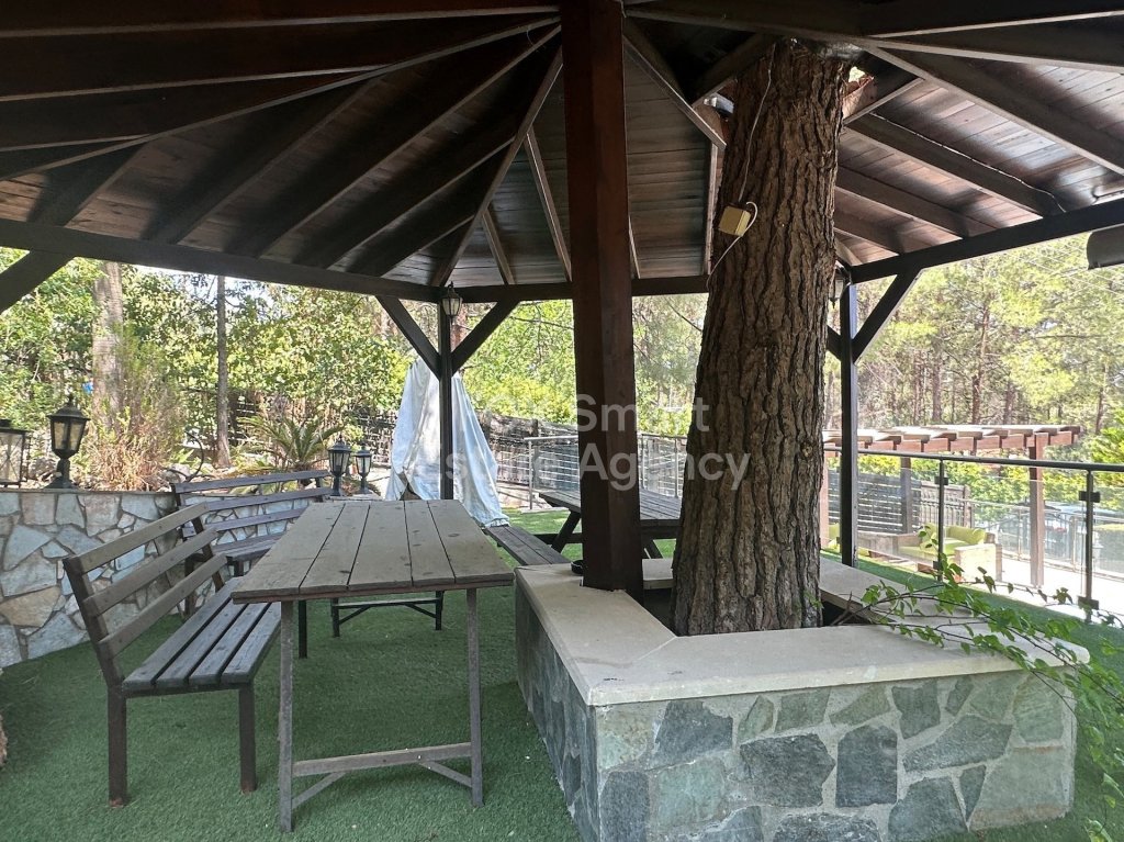 Pergola: The beautiful pergola offers a shaded outdoor space with breathtaking views of the surrounding pine forests, ideal for outdoor dining and lounging.