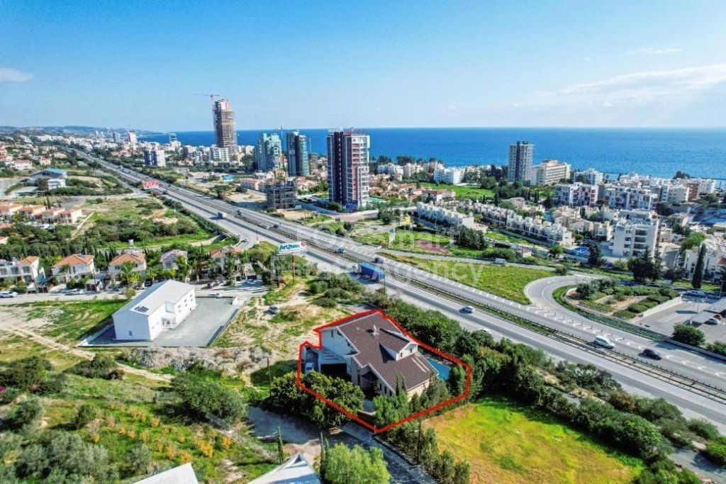 The property concerns a two-storey house with a swimming pool, in Mouttagiaka. It abuts a registered road on its south and northern boundaries, and on a public green area along its east boundary with a total frontage on the public roads of approximately 35 meters.