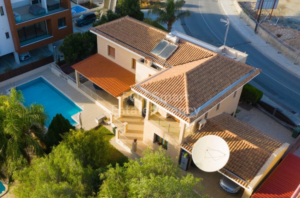 Amazing 6 bedroom detached villa located in Potamos Germasogeia area just next to Kalogiroi area. This beautiful house is only ten years old and in excellent condition. Very close to all amenities, with easy access to the highway and just two minutes from the tourist area and the beach. The house is built on a plot of 884sqm and has internal area of 550sqm including the basement which is 200sqm. Entering the house you will see the big living room with a dinning area. At the ground floor you can find separate kitchen and a room which could be used as a bedroom, office, tv room or play room. The first floor consist three big sized bedrooms and one master bedroom with en suit. In the basement there is separate place that could be used as a maids quarters. Also in the basement there is an independent guest house with own entrance, bathroom, kitchen and living room. The basement could be used as a covered garage, play room,storage room or everything else due to the big internal area. Around the house there is garden. The covered veranda with a view to the swimming pool is around 40sqm. This nice swimming pool as you can see in the photo is the most beautiful thing for your relax time in the summer.