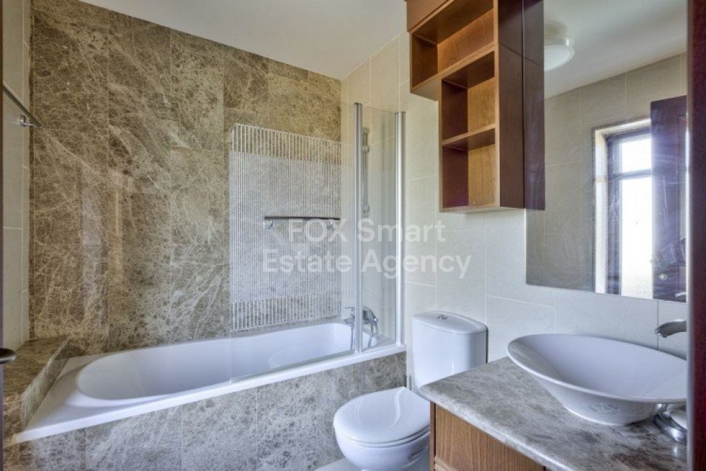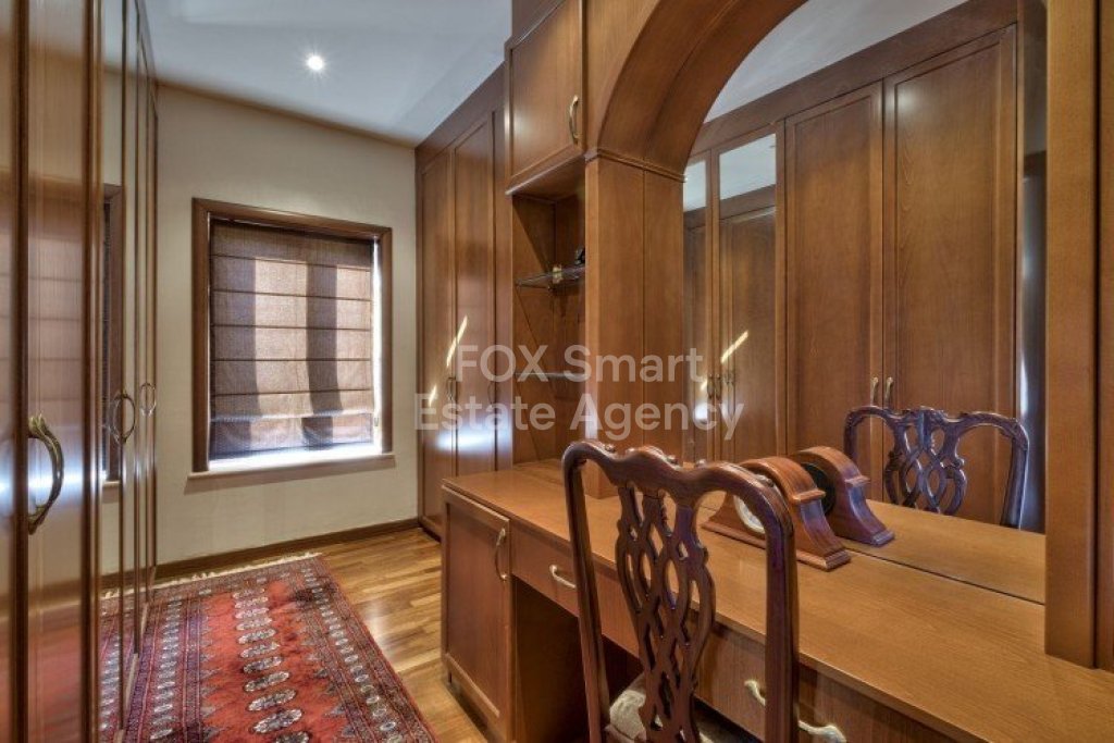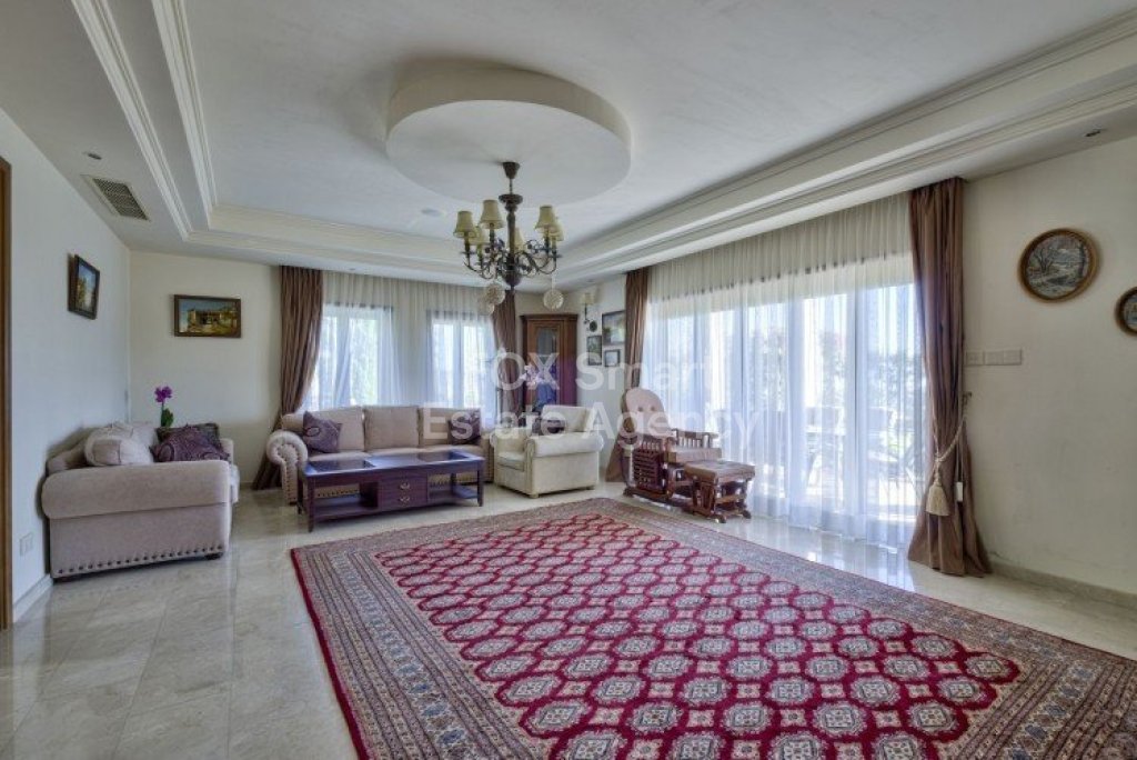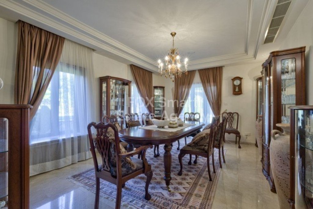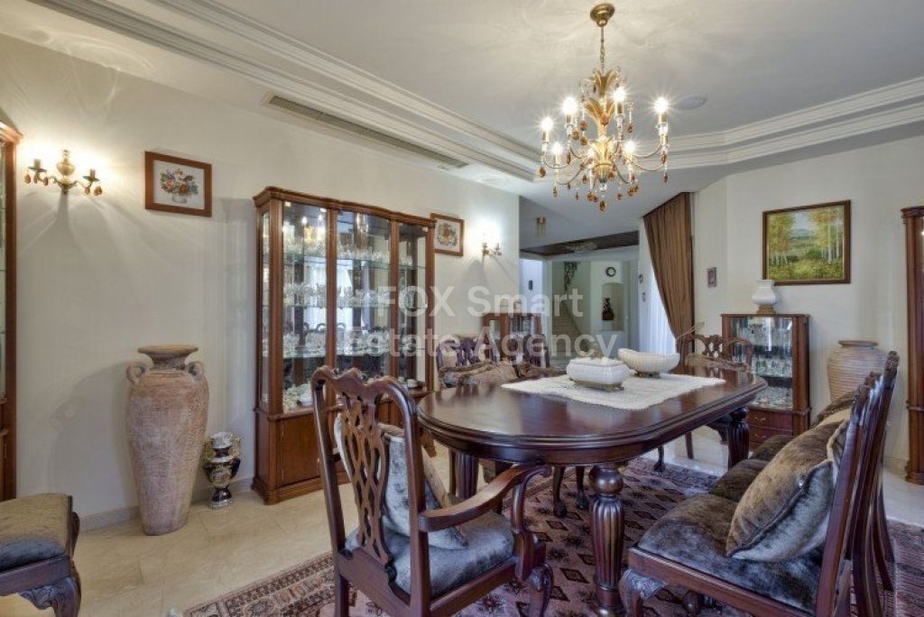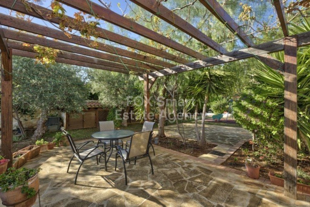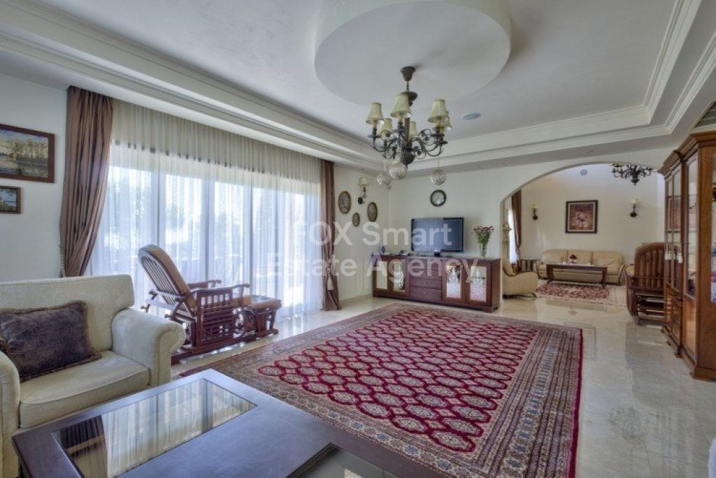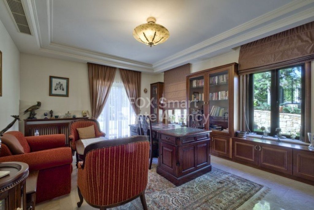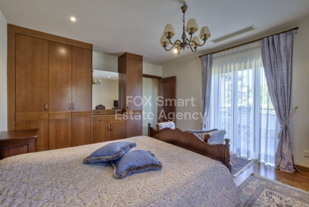 Main House: 440m2,Guest House: 100m2 2 studios 50m² x2, Plot: 3911m2 House consisting of: A. Ground floor: kitchen - family room, utility room, living room dining room, entrance hall, a master suite with separate dressing area and en-suite bathroom, guest’s toilet and study. B. 1st Floor with a landing hall, two bedrooms both en suite, large balconies all around the house. 5. Stone wall boundary with iron bars and 2.20m high electric gate remotely controlled entrance door - video/audio link to the building. 6. Preparation for irrigation system with a complete water system connected to own water well. 7. Preparation for satellite and ADSL / Broad band connections. 8. Solar and electric water heating system. 9. A pergola 3m x 6m with lighting. 10. 250m² of Crazy paving. 11. Preparation for 18 perimeter lights (lighting fixtures for in and outside the house will be supplied by the Purchaser). 12. Tiled roof bar with BBQ. 13. 4 Garden water/hose connections to own water source 14. Covered sitting area with fire place 15. 100m2 guesthouse with two en suite bedroom and kitchenette 16. Alarm System 17. Reclaimed roof tiles on top of specially imported corrugated cement based sheets 2. One single stone built garage 4 x 6 m with remote control door. 3. 20m2 outhouse with sauna, toilet, shower and changing room 4. Swimming pool 6m x 12m (maximum depth 1.6 meter) with built in spa. Double glazed aluminum windows, Designer kitchen , Parquet wood in bedrooms, Ceramic tiles or marble downstairs, Entertainment and Energy management System,. Central heating Air conditioning.
