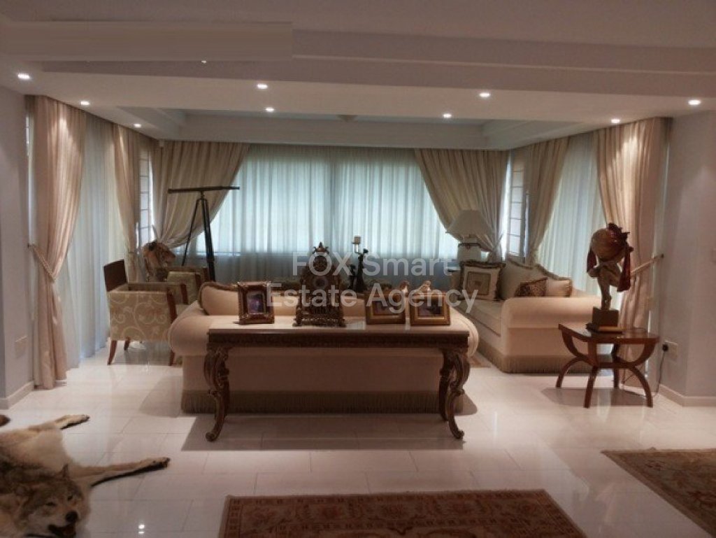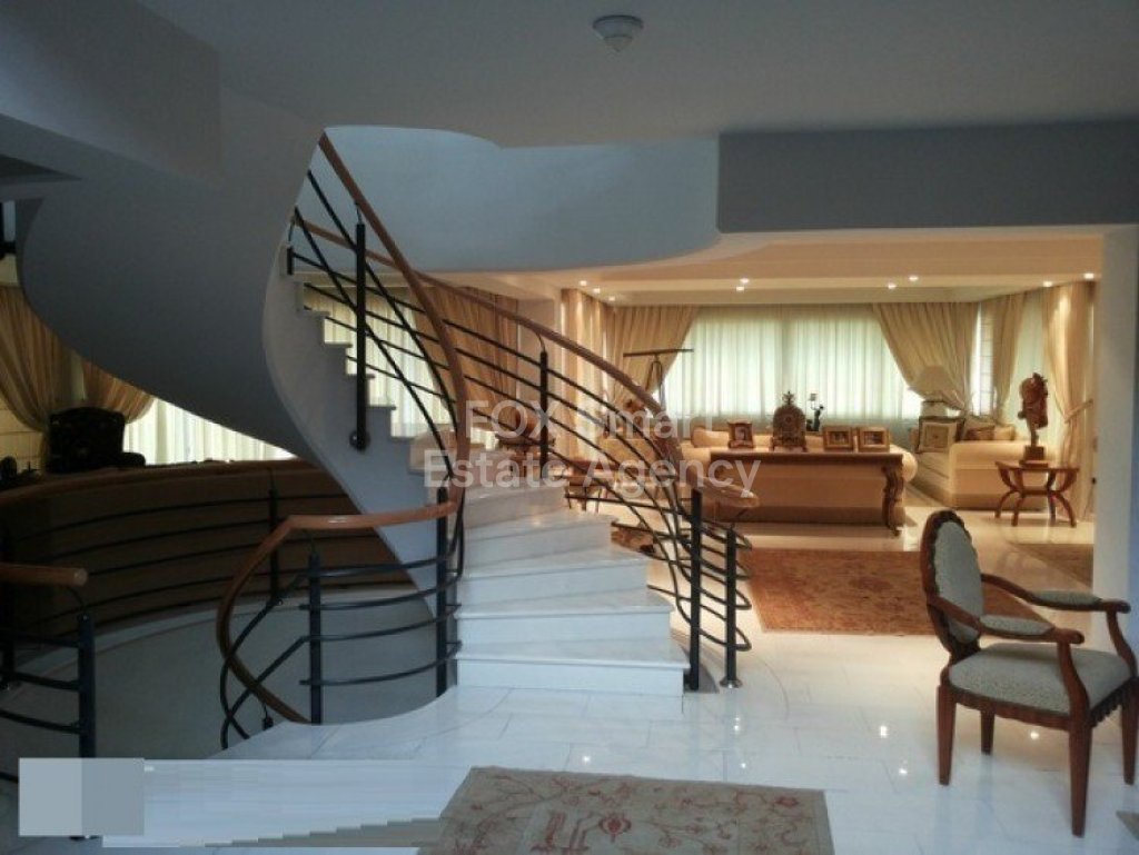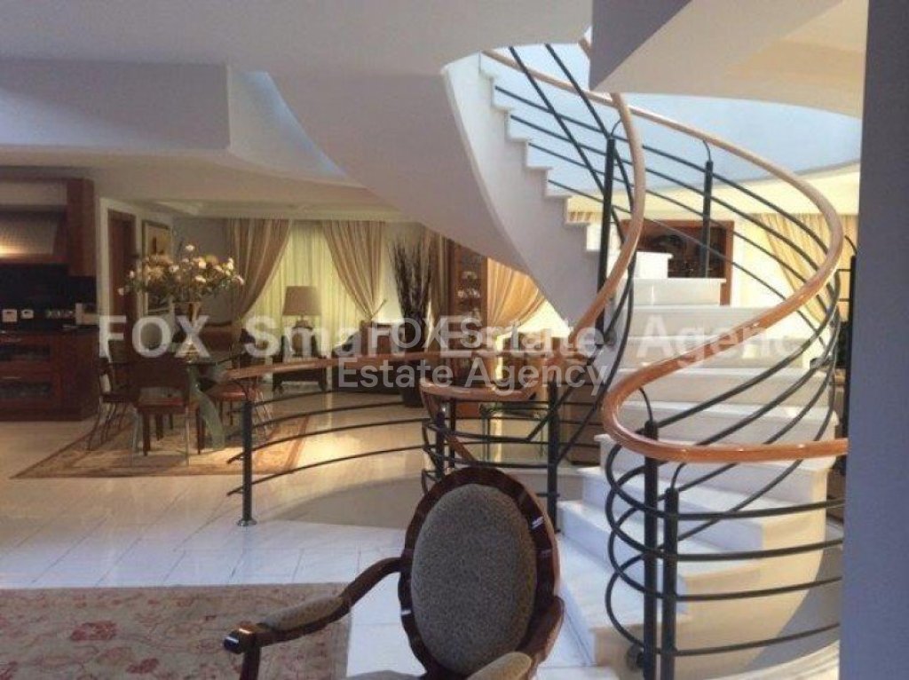 A lovely resale 5 bedroom Villa in the sought after location of Agia Fyla (Laiki Lefkothea). The property has a covered area of 560m² over 3 levels on a plot size of 870m². A large property with 3 sitting areas and a further dining area, guest wc, fully equipped kitchen with granite surfaces, feature staircase to all levels.. Large bedrooms with balconies overlooking the gardens and the panoramic views, master en suite with walk in wardrobe. Lower ground level has a further kitchen with sitting area, guest room with shower wc. Fully central heated, A/C throughout, double glazed windows, marble floors, parquet in bedrooms. CCTV cameras, alarm system, Bore hole, shutters.