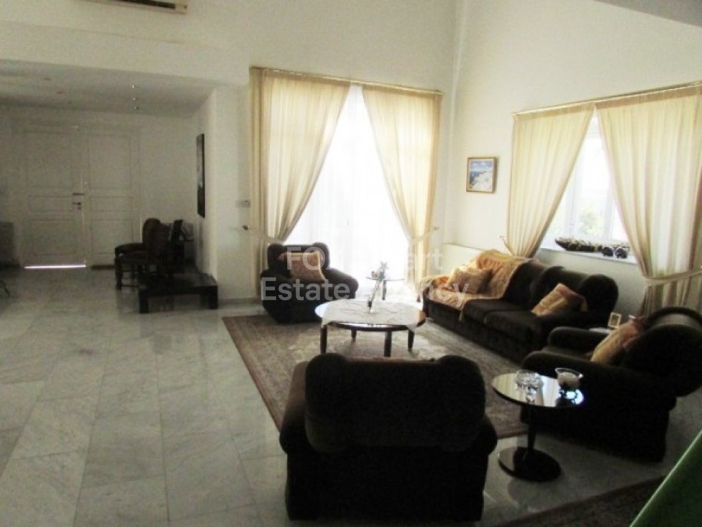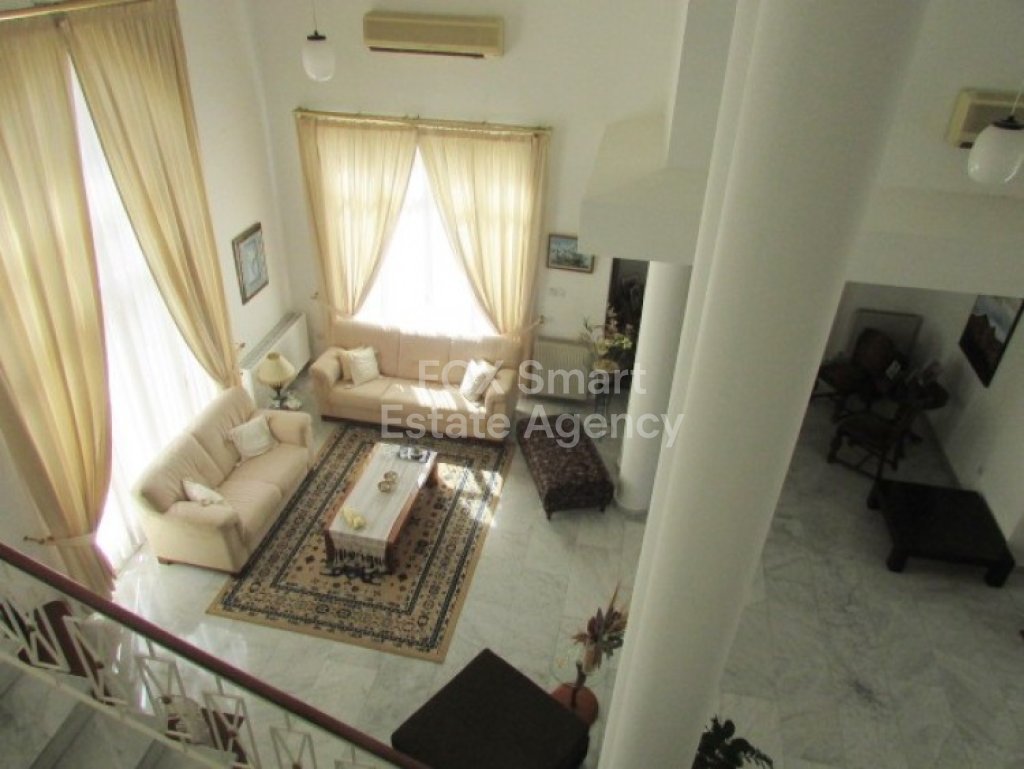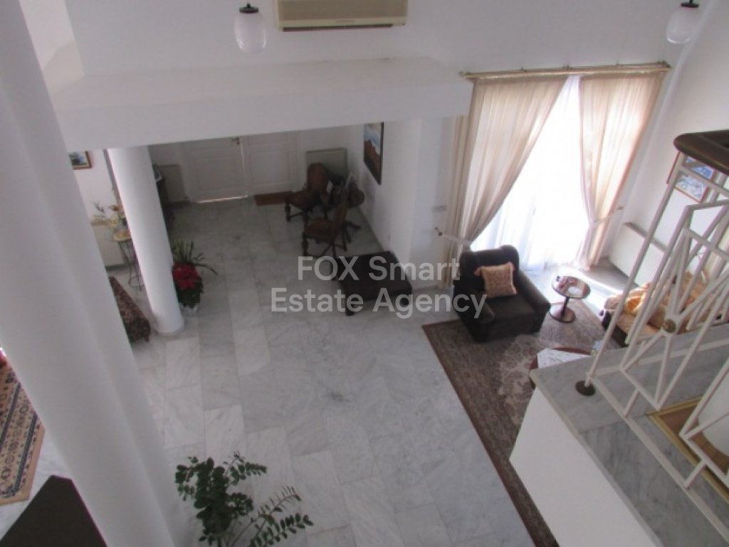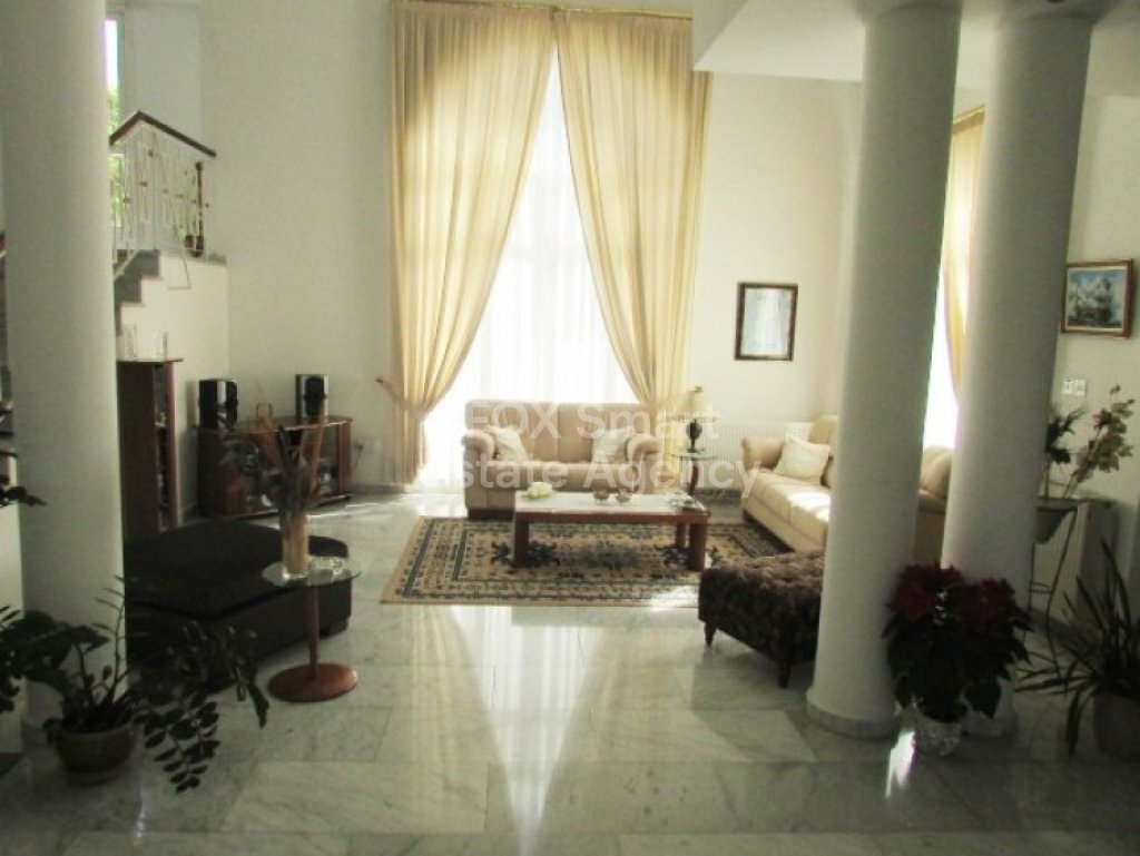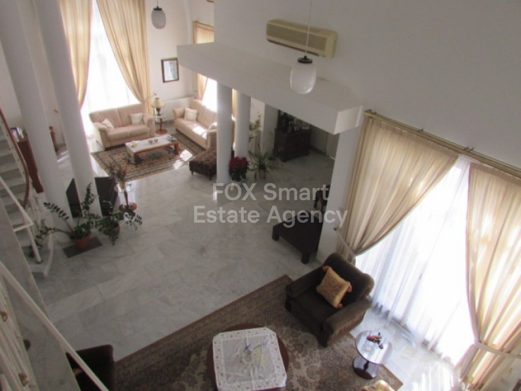 Luxury house 440 sq.m finished at the year 1995. It consists of an open plan space lounge with dining and sitting room, quest toilet, separate kitchen with living room and one office. on the first floor is the master bedroom en suite with spacious walk in wardrobe, two well size bedrooms with common bath toilet and wash basin and one attic 70sq.m with shower, toilet and wash basin. Central heating air condition all over the house, swimming pool 8x3.5 with changing room and toilet, barbeque, one covered parking. Οικία πολυτελείας 440 τ.μ τελειωμένη το 1995. Αποτελείται από ενιαίο χώρο σαλόνι καθιστικό και τραπεζαρία, αποχωρητήριο ξένων, ξεχωριστή κουζίνα με καθιστικό και ένα γραφείο. Στον πρώτο όροφο είναι είναι το κυρίως υπνοδωμάτιο en suite, και γκαρνταρόμπα, ακόμη δύο υπνοδωμάτια με κοινό μπάνιο με αποχωρητήριο και νιπτήρα καθιστικό και σοφίτα 70 τ.μ με ντους αποχωρητήριο και νιπτήρα. Κεντρική θέρμανση κλιματιστικά σε όλο το σπίτι. Πισίνα 8χ3,5 με ντους, αποχωρητήριο, μπάρμπεκιου και ένα καλυμμένο χώρο στάθμευσης.