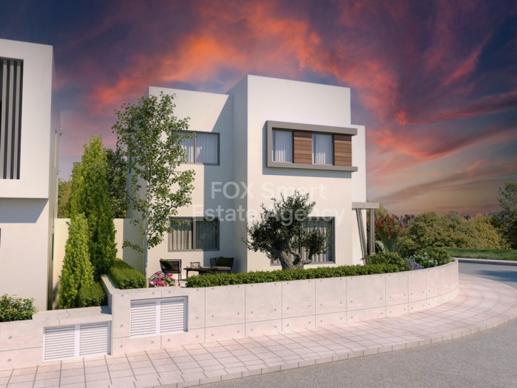 The development aspire to combines trending architecture and green technologies, towards a middle-class housing that is affordable, contemporary and friendly for the environment.Two storey house with two covered parking spaces, open plan living-dining-kitchen in the ground floor plus guest wc and large covered veranda.4 bedrooms on the upper floor the one with en suite bathroom and a main full bathroom.Externally has front and rear garden - courtyard.Double glazing windows, provision for under floor heating, AC/ split units, solar system and photovoltaic installed.The house will be on energy saving category "A".Delivery 14 months after sale agreement.