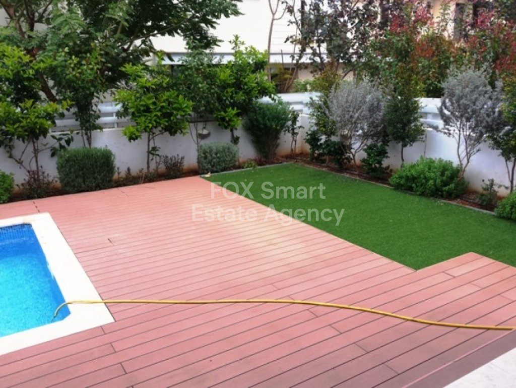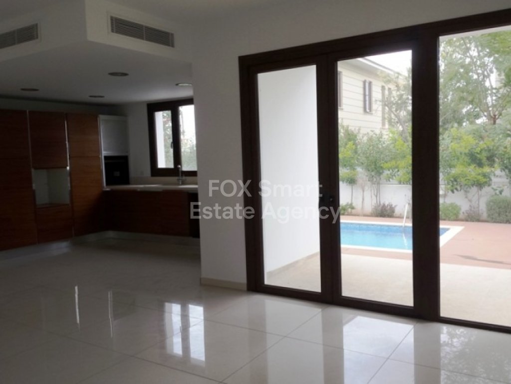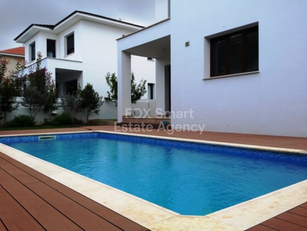 This amazing and luxury brand new four bedroom detached house is situated in a prime location in GSP area, in a quiet dead end road and with easy access to the highway. It's a spacious house that measures 241 sqm total covered area in a plot of 365 sq.m and consists of a large lounge and sitting area, a guest WC and an open plan modern kitchen with a nice view of the outdoor swimming pool with decking around and the garden with synthetic grass, mature trees and flowers. Upstairs, there are 4 good sized bedrooms, all parquet flooring, master bedroom with big walk-in wardrobes and en-suite shower, plus another full bathroom to serve the other 3 bedrooms. This property for has been built with very high standards and luxuries including thermo insulated walls, UPVC double-glazed windows, Italian kitchen with artificial granite worktops, plenty of attic storage space, solar water system, pressure system, electrical gates, parking space for 2 cars (1 covered), irrigation system, security door, video entry phone and water-based under floor heating and ceiling type air conditioning systems all using energy efficient, low running cost heat pumps. The main benefits include energy efficient heating/cooling and the lack of radiators leaves spaces free to furnish without any obstructions thus avoiding wasted space. The most important for this house is that it has already title deeds and certificate of energy efficiency B class. This is a must see property full of style and luxury.