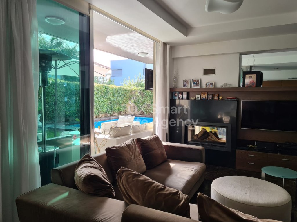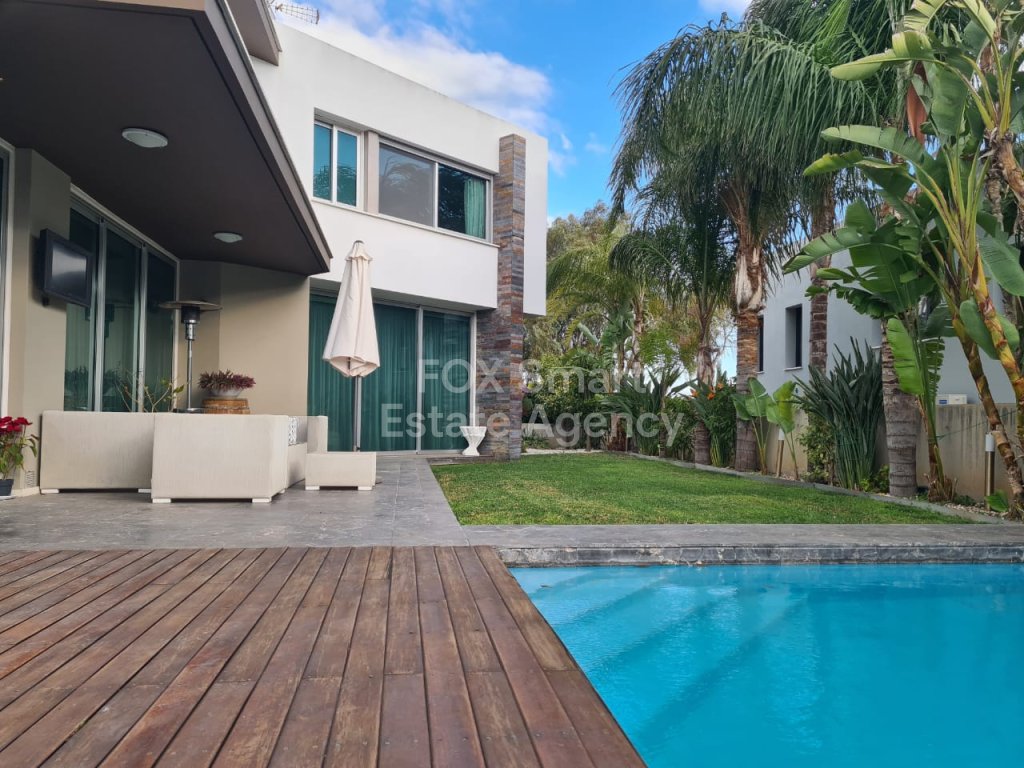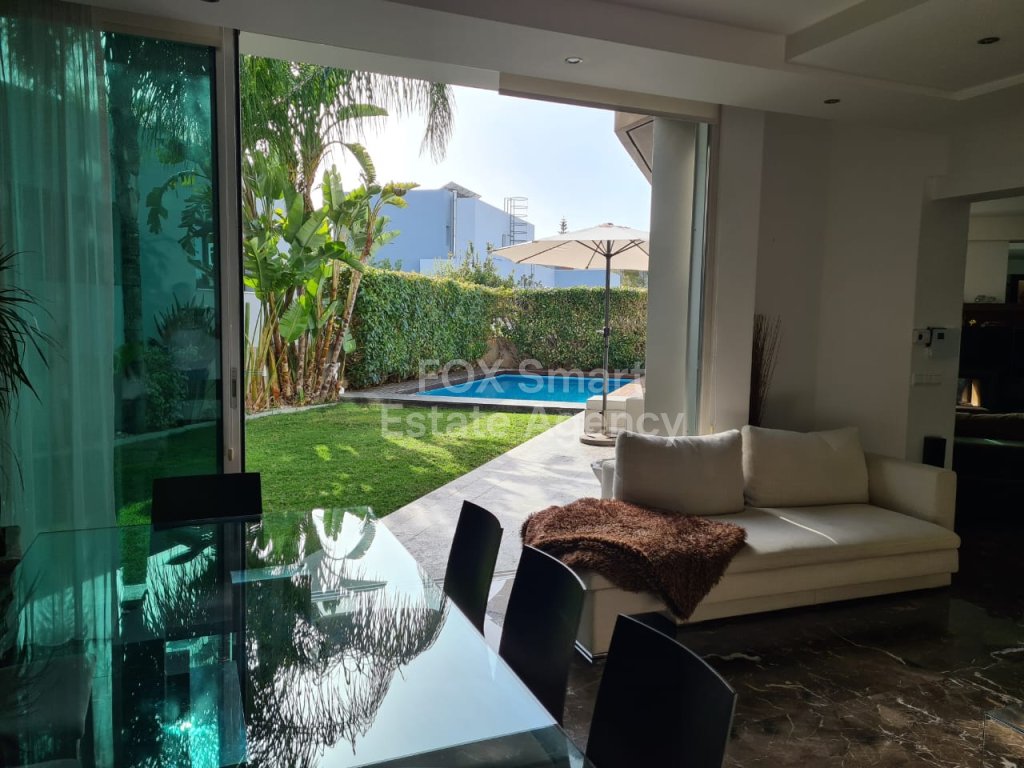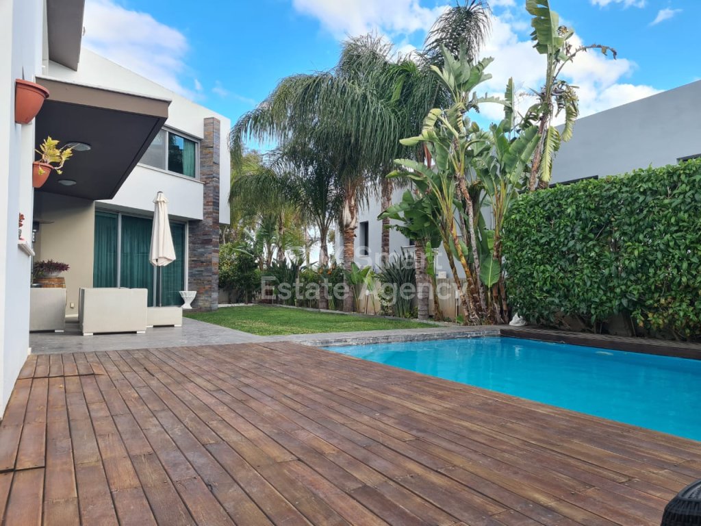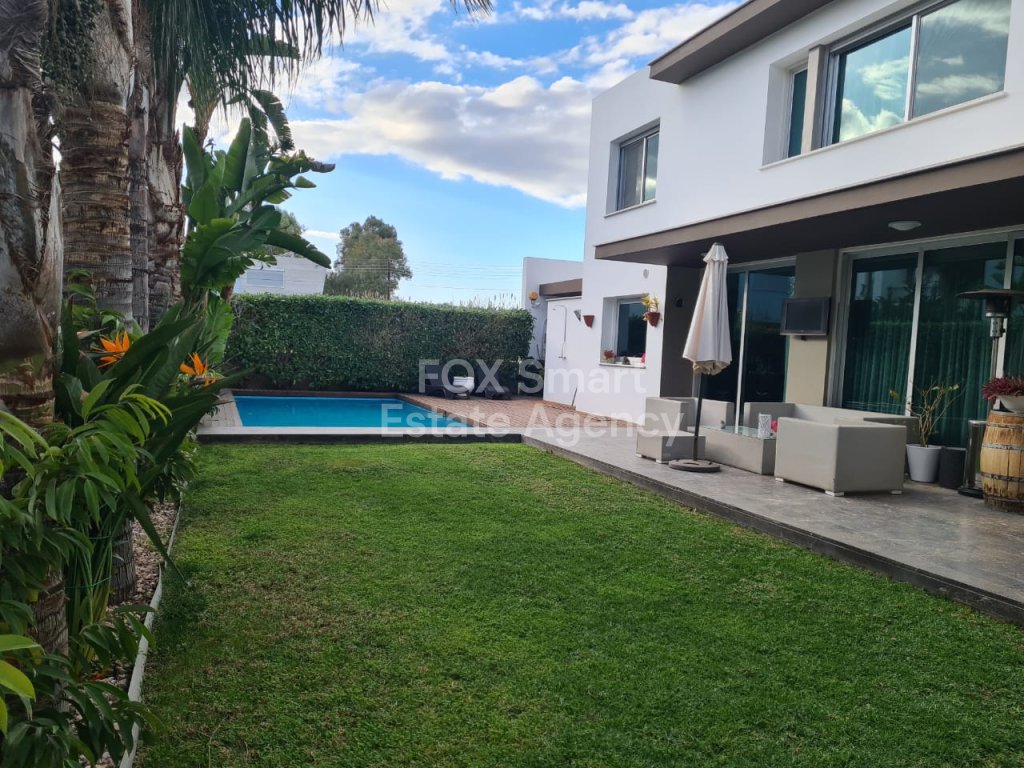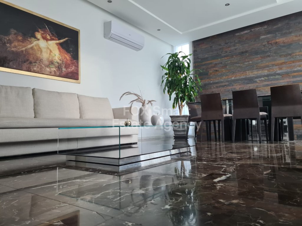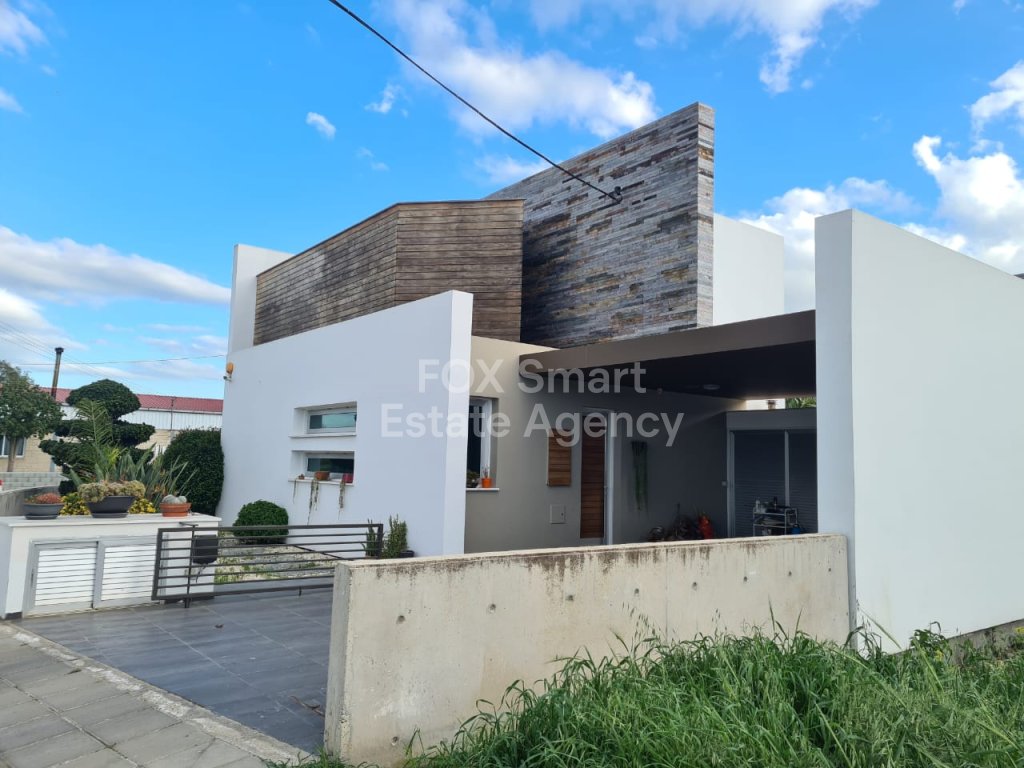 Modern- luxury house located in a quiet road in Lakatamia. A large living room at the entrance, an open-plan- kitchen and patio leading into a yard with a swimming pool. On the upper floor you can find there are 3 + 1 (maid's room)bedrooms (the master bedroom with an en-suite and walk in wardrobe). The whole structure (ladder, furniture, cupboards and stairs) are made of Irocco wood with a Wallnut finish. There are no ceramic tiles (even it the bathroom) since marble tiles were used everywhere in the house. The double -face fire place is separating the kitchen from the living-room. Since there is an under-floor heating is reducing the cost of the heating for all the year round (400 euros). The build- in freezer and fridge with walnut finish and the expensive appliances in the kitchen (oven, cooker, extractor fan) make the cooking pleasurable and convenient. The washing machine and dryer in separate place. Also, there is a mini bar together with wine fridge in the living room and a luxury sofa set.The whole house is fully equipped with fire-detectors, alarm, safety cameras and an electric gate for the double covered parking. Also there is an extra room at the ground floor which can be used as play room or a maids room. There is a private well for the filling of the swimming-pool. Price for furniture is also negotiable. MUST BE SEEN!!!