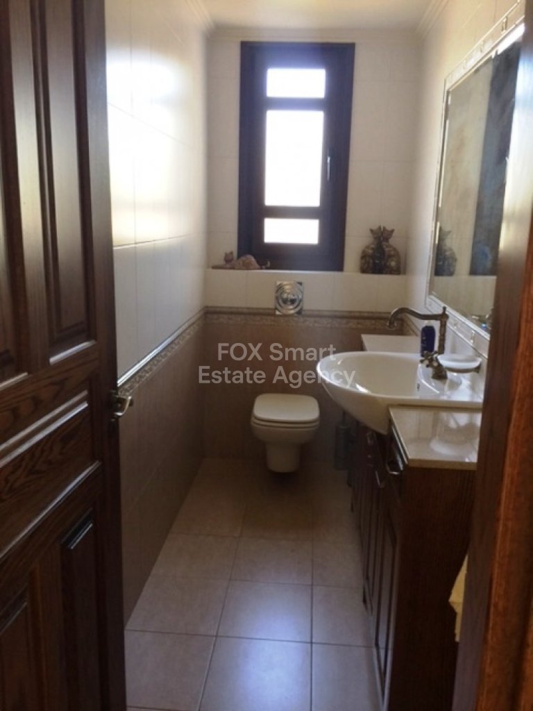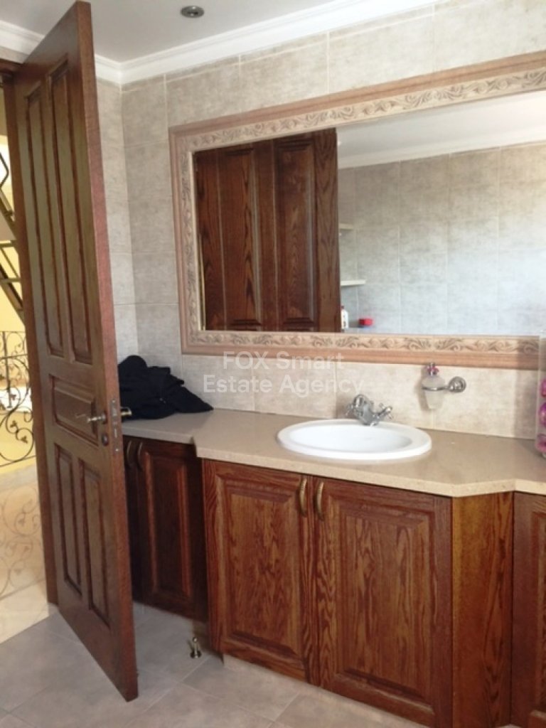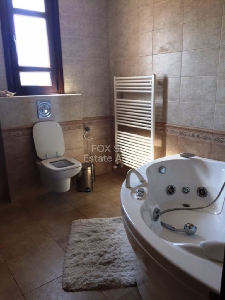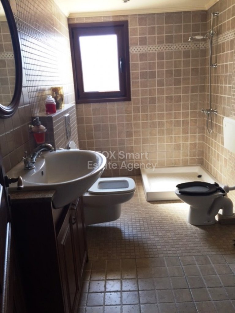 This newly luxury 4+1 bedroom modern house for is located in Lakatameia, in a quiet neighbourhood with nice veranda and playground for kids lovely greenish with trees back yard. On the ground floor, there is a separate kitchen with all electrical appliances and a tv room. Spacious dining/ sitting area, guest W/C, laundry room, quest room with w/c shower, whereas on the upper floor you can find 4 comfortable bedrooms one of them en-suite and the other 3 rooms share a big bathroom with Jacuzzi, also a small kitchenette. It has double parking with electrical gate, big swimming pool plus maid’s room with shower w/c. In addition to this, there is a big barbeque area with lovely greenish yard all around of the house. Under flooring central heating, fully Air-condition, solar pressure water system available. Also a big attic on the top MUST BE SEEN!!