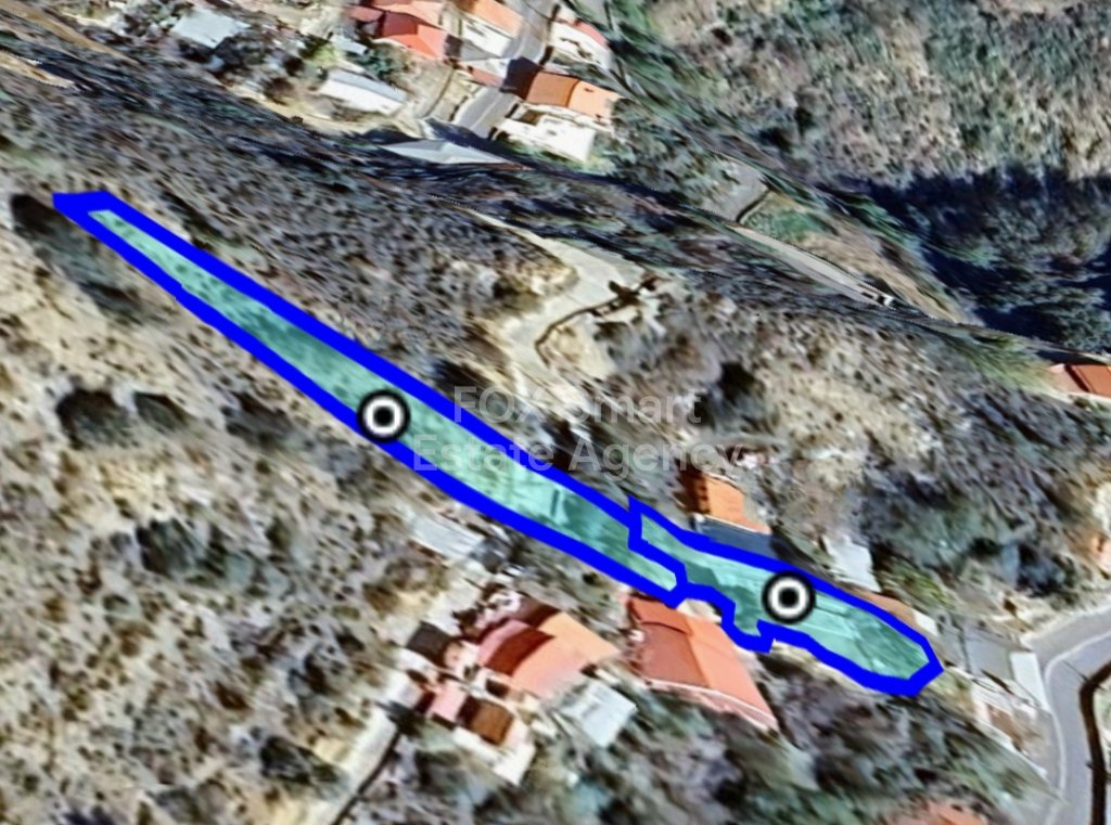 • Τα 2 αυτά τεμάχια εφάπτονται μεταξύ τους με συνολικό εμβαδόν στα 1273 τ.μ. και έχουν κεκλιμένη επιφάνεια, προσφέροντας προνομοιακή θέα προς την γύρω περιοχή και στο χωριό.