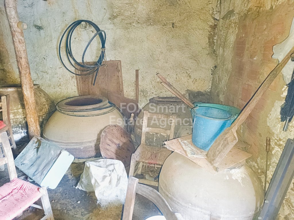 • The second house is one bedroom and has about 90 sq m. interiors. Inside the second house is included a traditional stone-built room with large ancient jars, a winepress and large wooden balls and whose age is unknown.