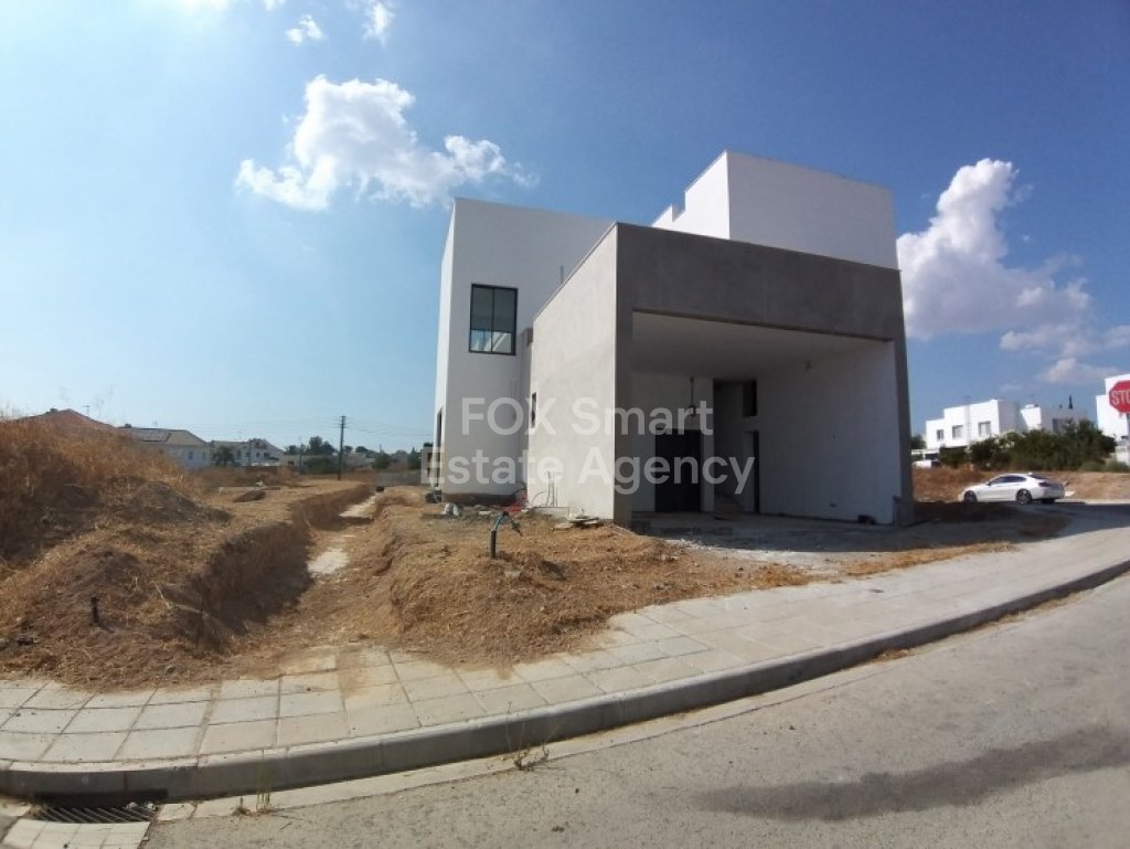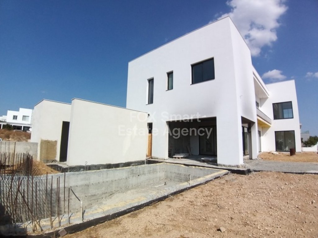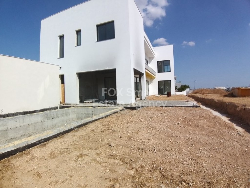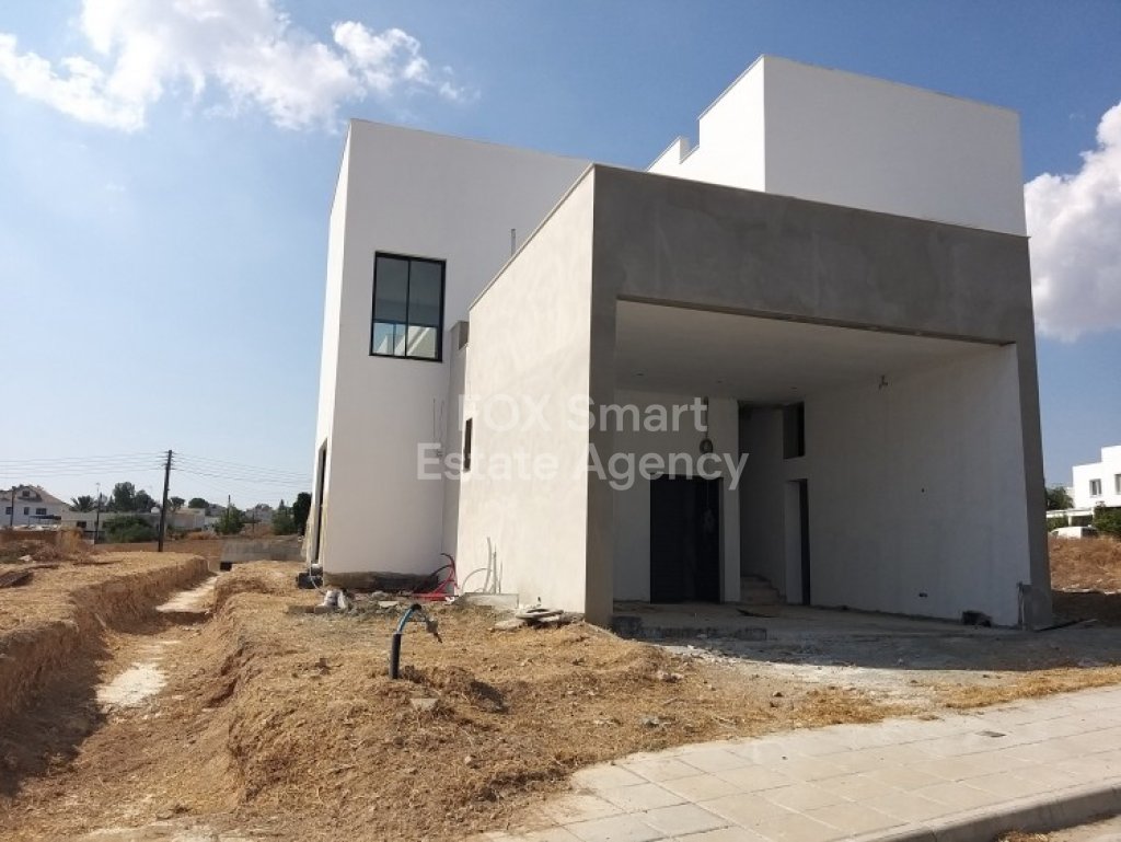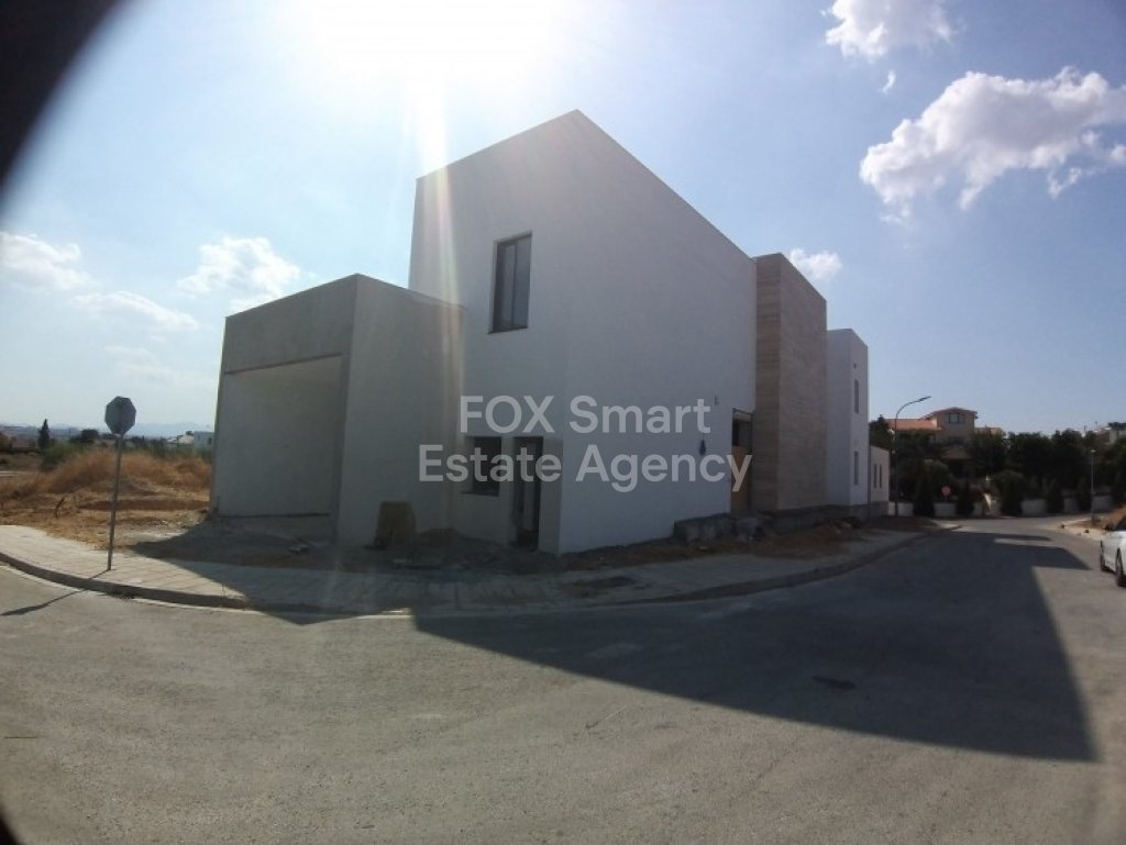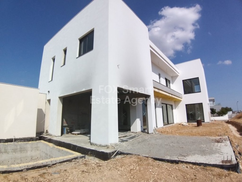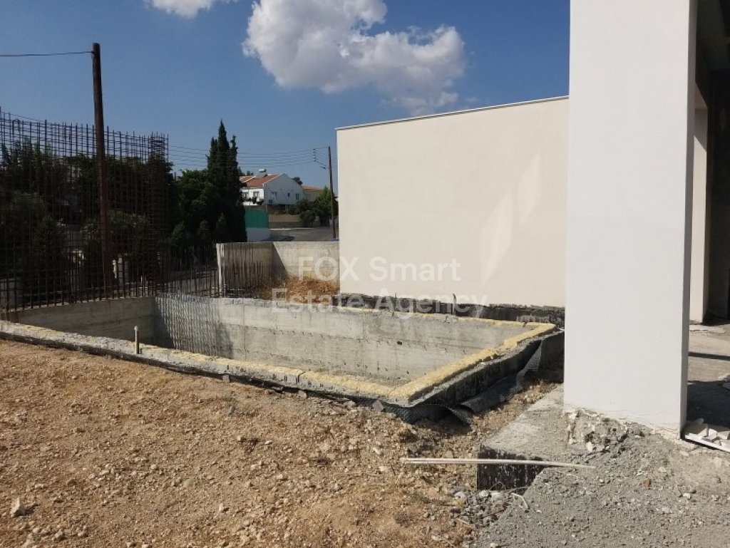 For exceptional detached four bedrooms villa with swimming pool in Strovolos. It's a modern contemporary design with full smart provision throughout the facility. The property is almost finished in a land of two corner plots of a total area of 1072 sq.m with an internal space of 630sq.meters. It consists of an entrance hall, lounge, dining room, living room with fireplace,s separate spacious kitchen, utility and storage rooms with easy access to the pool and to the covered parking. The first-floor consists of four large bedrooms two of which have an en-suite bath and a laundry room. All this architecture height gives nobility to the whole building.