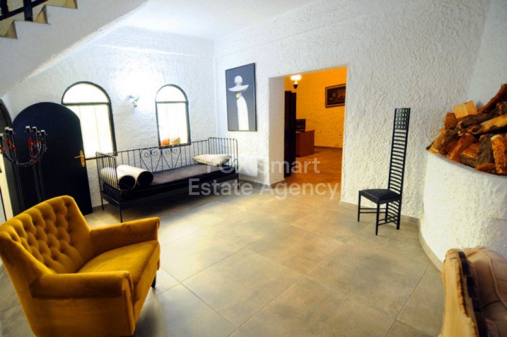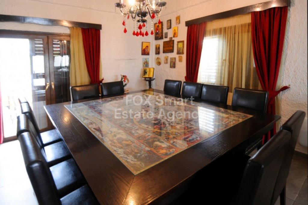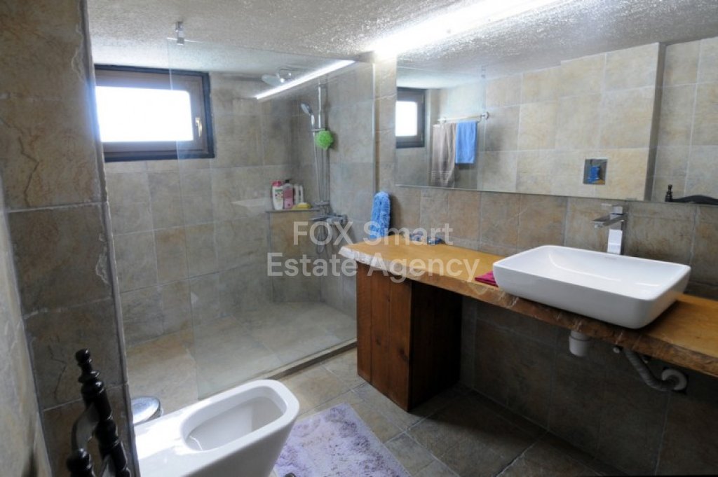 Beautiful classic traditional 4 bedroom semi detached house for sale in Eleonon in Strovolos. The house has been renovated in 2020 and has a huge garden, yard with stone and a nice swimming pool. The ground floor consists of a comfortable sitting/ dining room with a fire place, a nice semi- open kitchen with solid wood cupboards, electrical appliances and a quest toilet.Walking up the staircase to the 1st floor will lead yo to a corridor and the 4 bedrooms with the spacious master bedroom en-suite , another ensuite bedroom has a walk- in closet, a full bathroom, a store room and 2 balconies with a nice view. It also features photovoltaics, pressurised water system, double glazing windows, heater units, a/cs in all areas, 2 extra store rooms, 1 covered parking space and 2-3 uncovered parking spaces. The materials used for building the house as well as for the renovation are of excellent qualities.
