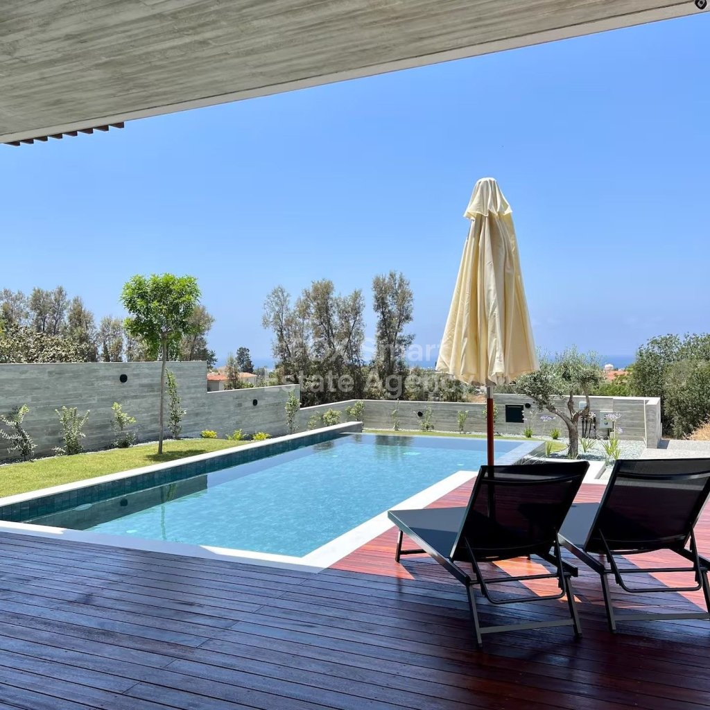 The property delights very nice sea views from ground floor and amazing un obstructed sea views from the first floor, located lower Chloraka, 800m from the sea, near amenities and private school.