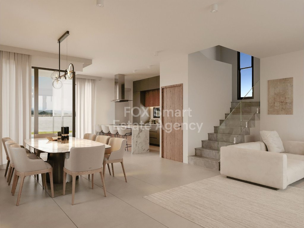 Residents enjoy easy access to essential amenities: schools are within 650 meters, supermarkets are just 800 meters away, and restaurants are a short 100-meter walk. The beach lies 3 km away, Paphos International Airport is 12 km from the site, and nearby golf courses are within an 8 km radius.