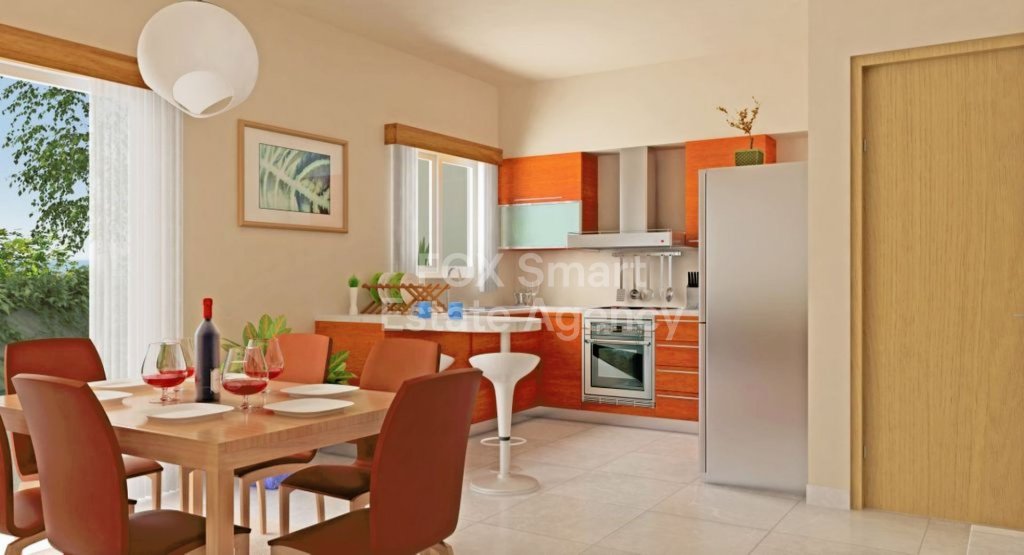 The villa features a master bedroom with an ensuite bathroom, an additional WC, and two more bathrooms. It also includes large tiled balconies and verandas, perfect for relaxing and entertaining. The living area is enhanced by an elegant stonework fireplace, adding warmth and charm. Other features include a private parking area, a private garden, and ample storage space. For those seeking extra luxury, there is an option to include a private swimming pool. Additionally, the villa comes with pergolas that provide shaded outdoor areas for leisure and enjoyment.