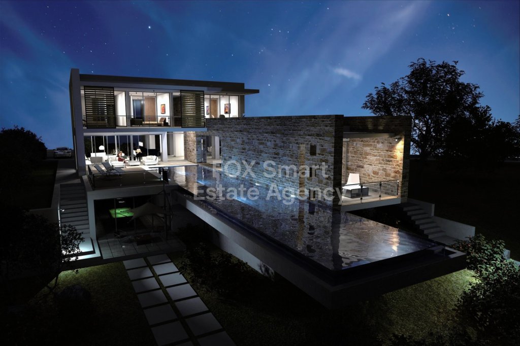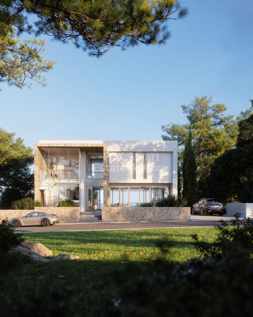 This stunning four-bedroom villa is located in the beautiful area of Konia and boasts incredible, uninterrupted views of the sea. The villa's design exemplifies luxurious living, built to the highest standards with meticulous attention to detail. Its minimalist architectural style exudes refined elegance, complemented by lush greenery, clear waters, and a glistening cityscape in the background.