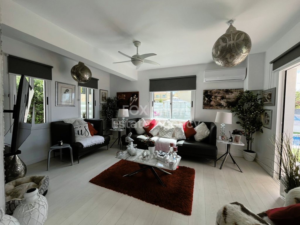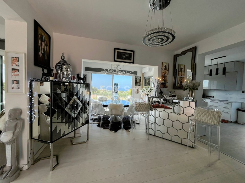 The villa has four bedrooms, three refurbished bathrooms, and an open-plan lounge, dining area, and kitchen, all renovated in the past year.