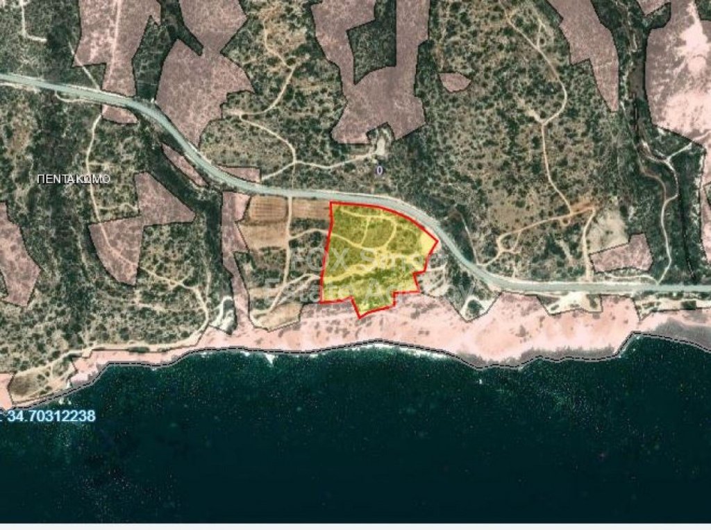 This amazing land which is front line, has been recommended for tourist zone by the municipality of Pentakomo.This means that it would be ideal for hotel, or other investment developments in the very near future.The beach front land is government owned and falls into the protective zone, therefore no property can be built in front and the further advantage is that no percentage of the plot 30,340 sqm will be eliminated as protective zone. An application can be made today for the development.