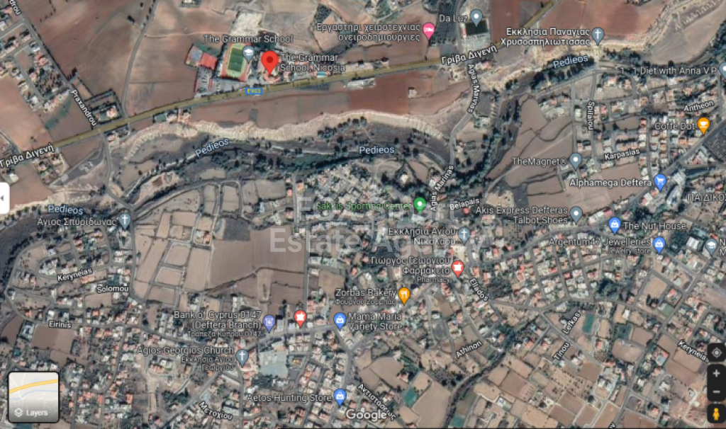 For plot of 559m² located in Pano Deftera near the Grammar School. It is categorised in the H2 residential zone with 90% building density, 50% coverage ratio, with allowance for a two-floor building at 8.3 metres of height.