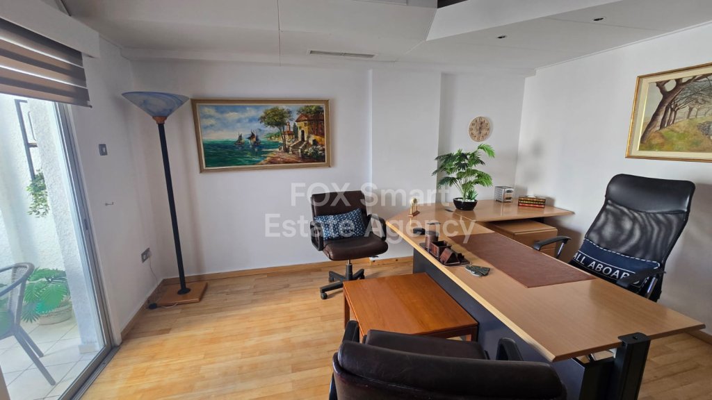 The office includes one private bathroom and large windows that offer a pleasant city view, bringing in plenty of natural light. The building is situated in Agia Zoni, a popular and vibrant area known for its mix of businesses, services, and lively atmosphere. Agia Zoni provides easy access to banks, restaurants, shops, and public transport, making it convenient for both employees and clients.