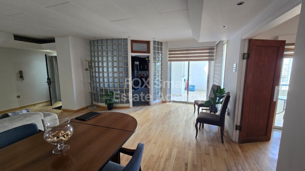 Available for rent is a spacious, fully furnished office located on the third and top floor of a well-maintained building with elevator access. Offering 135 square meters of internal space, this office provides ample room for your business needs. The open layout is ideal for collaborative work or can be adapted to create private offices. The property features a modern central air conditioning system to ensure comfort throughout the year.