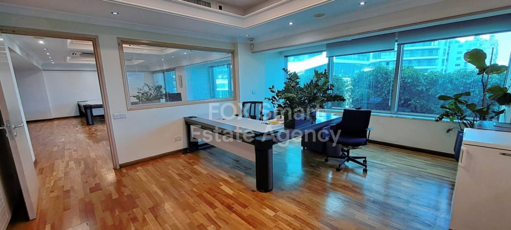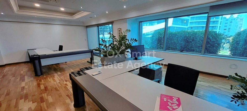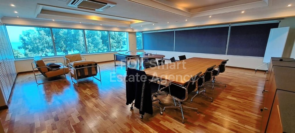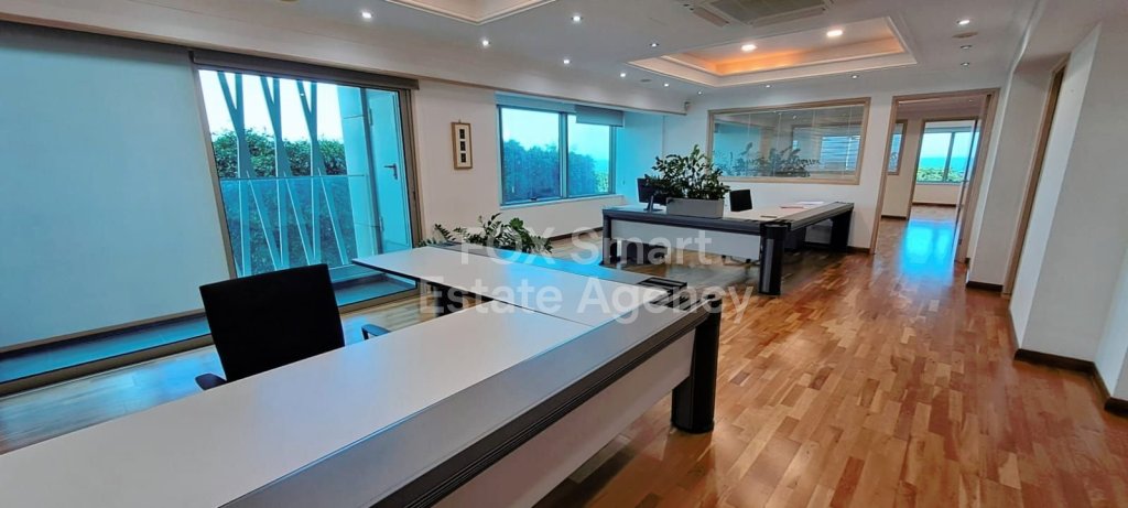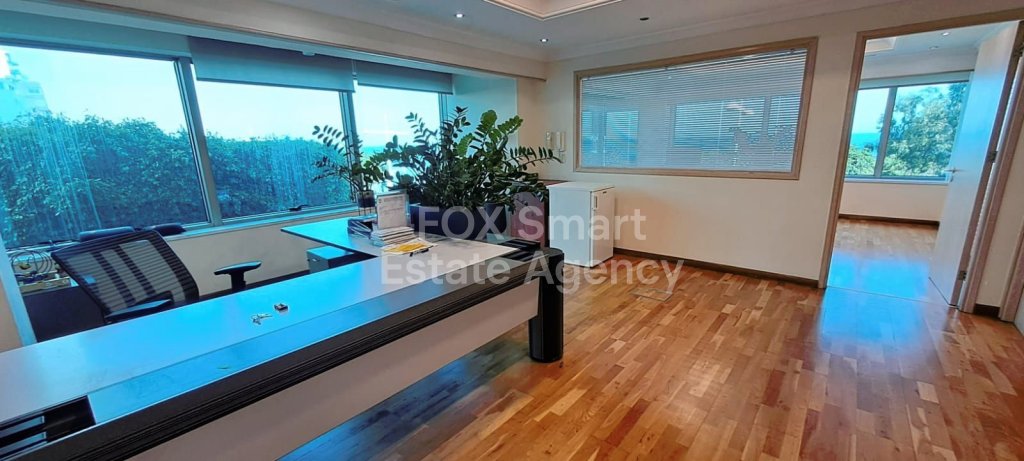 Exquisite office space in the Neapoli area of Limassol boasting luxury finishes, ample space, and stunning sea views. The inclusion of a director's office with a conference area adds a touch of sophistication, making it ideal for high-profile businesses or executives. The office layout consisting of four separate rooms is thoughtfully crafted to optimize functionality while exuding elegance at every turn. Additionally, there are two WC, a shower unit, and a kitchenette offering convenience and comfort for occupants. Its strategic location along the seafront road, with easy access to main roads, further enhances its appeal and ensures that you're always well-connected to the pulse of Limassol's bustling business scene. A fabulous opportunity for businesses seeking a prestigious and well-equipped workspace in Limassol. Please contact us to schedule a viewing.
