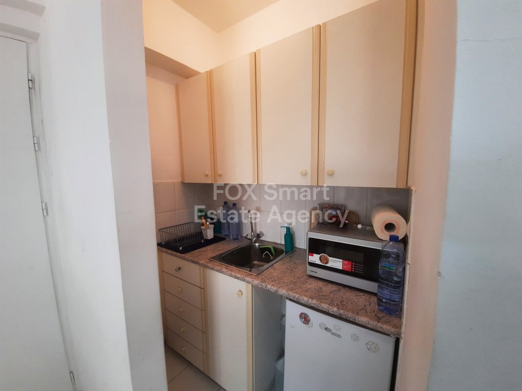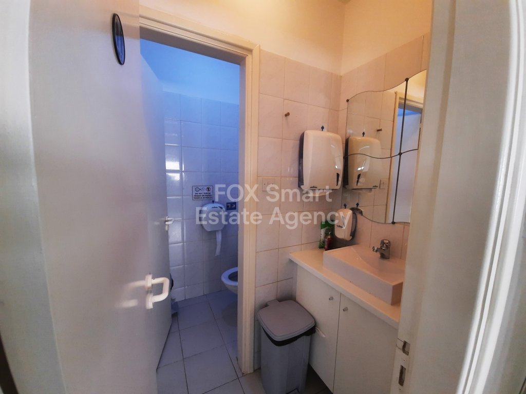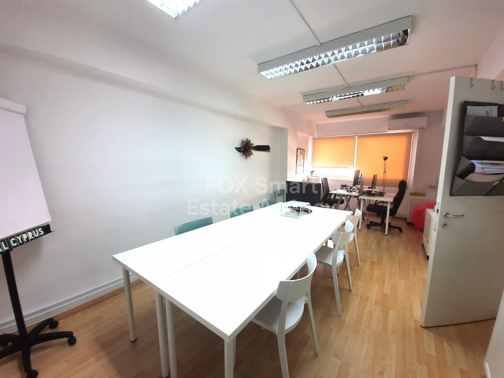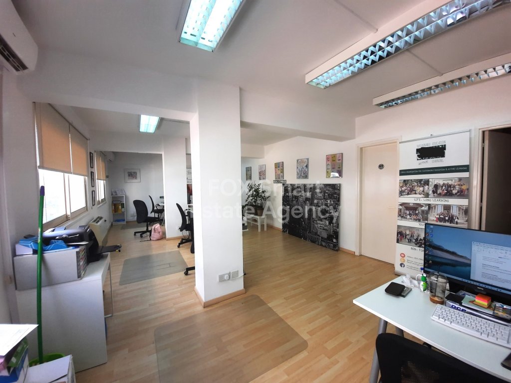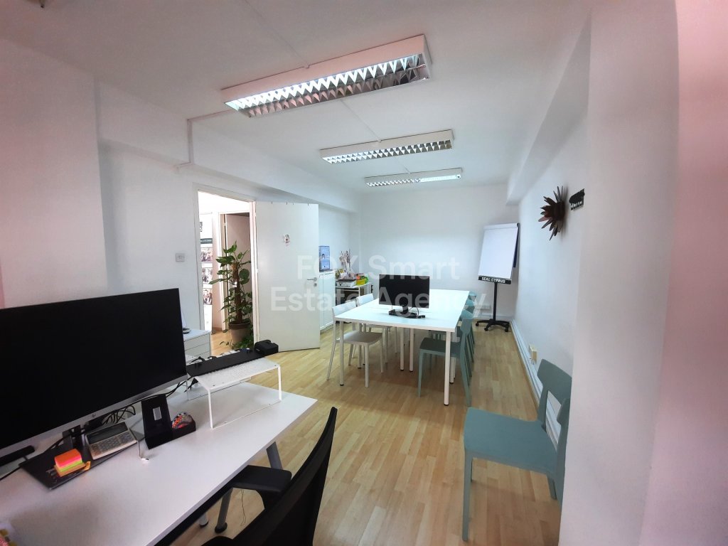 Modern Office 82sqm in Platy Aglantzia , Nicosia Location This office space is in Platy Aglantzia. Next to Kyrenias Avenues and within walking distance to all services. Platy Aglantzia is a privileged area of Nicosia with immediate access to the city center. Easy access is also available towards the Nicosia Limassol highway. External Features The building is located next Kyrenias Avenue. It is a commercial building of offices and shops on the ground floor. The building is 24 years old, and its external looks are modern and well maintained. Internal Characteristics The office is situated on the first floor with internal area of 82sqm partitioned in two spaces. It consists of a big open plan space, a separate conference/meetings space, a w/c and a storage space. Double glazed windows and roller blinds. A/C units covering all spaces. Covered parking for 2 cars.