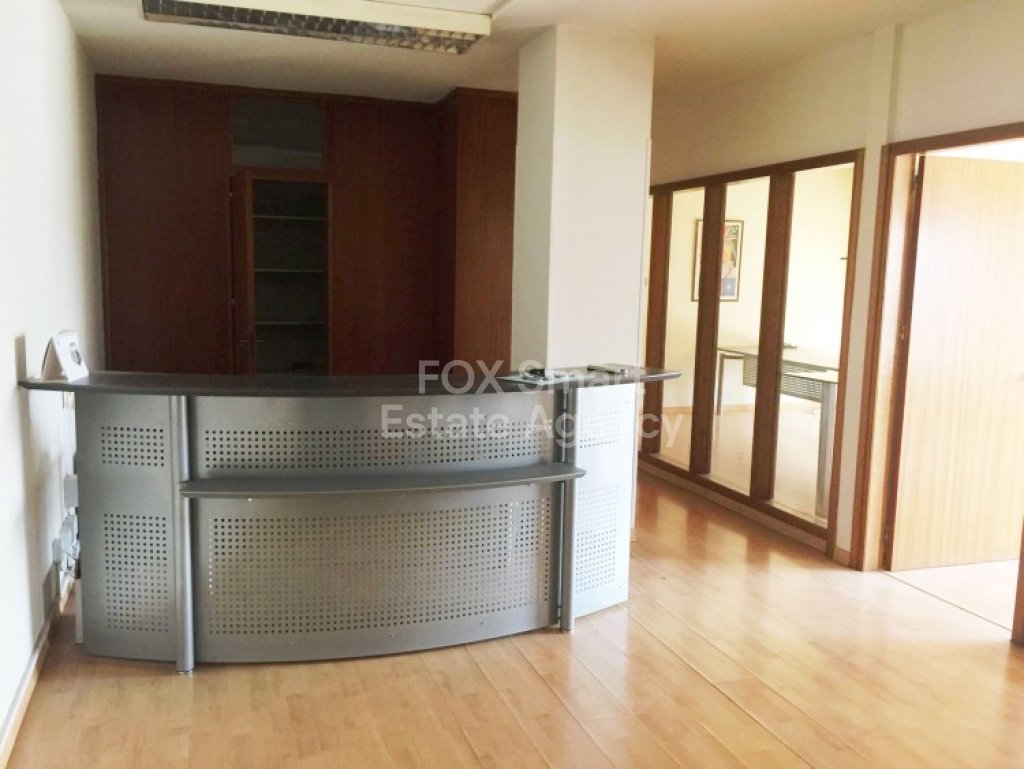 Office space 156sq.m in a commercial building in Kennedy street in NicosiaIt consists of 4 big offices, kitchenette, 2 W/C, store place, reception area, one covered parking and another one uncovered.