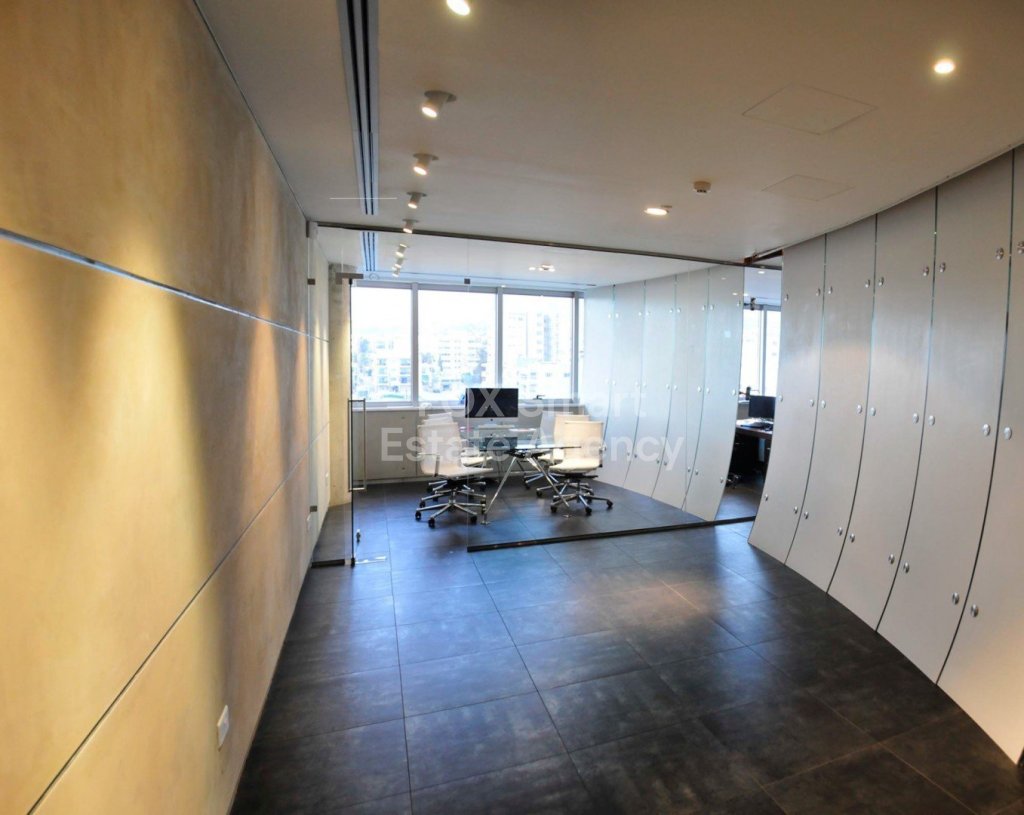 A modern commercial building with architectural design, maximised frontage area for the absolute presence towards the main traffic artery on Spyrou Kyprianou.High quality internal wall cladding and partitioning made from top quality materials and designer details with fixtures and fittings making this the ideal working enviroment.Upgraded raised flooring, VRV a/c, two independent server rooms 24 BTU (DAIKIN). CAT 6 fitted with high speed networking. Lighting of high quality, Italian designer spot-lights and LED fittings. Energy efficient double glazed sound proof windows. Dedicated server rooms, upgraded electrical distributor box for up to (10Kva+) ready for intergration in server room. 3 PHASE electricity upgrade.Private covered outdoor balconies. Security with external monitoring system, video entry access, thermal and temperature sensors throughout.Top floor, city views, walking distance to all amenities, easy access to all arteries of Limassol and the highway.