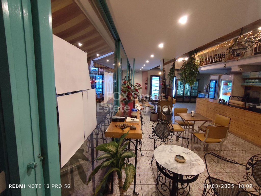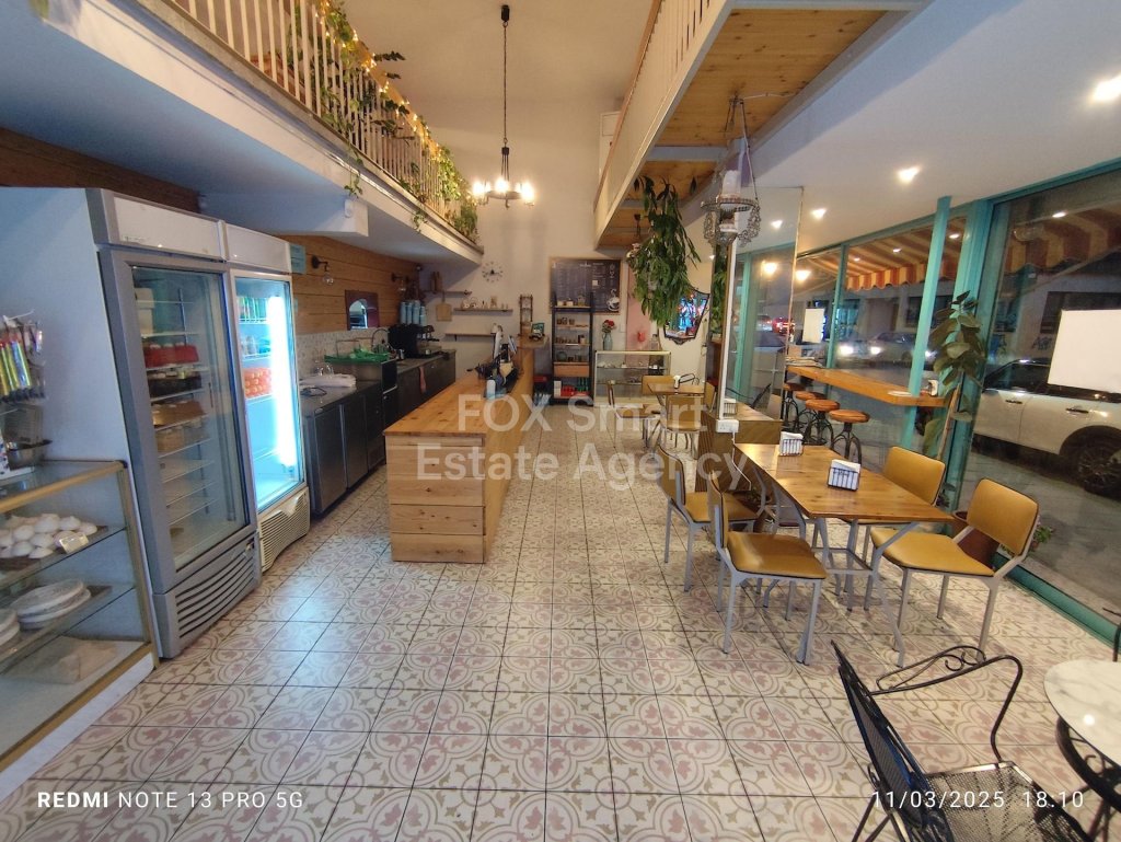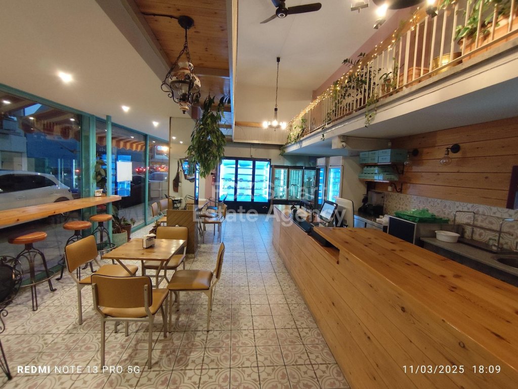 Business in Agia Zoni area of 152 square meters is available now. It features one kitchen with all the equipment, one w.c., a/c in all areas,, security system , alarm system, office , parking space for two cars and storage room as well.