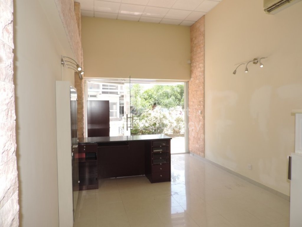 This is a privileged shop, on a corner mixed-use building, on a commercial avenue, close to the center of the city.The shop is suitable for a variety of purposes, due to its location, visibility, and accessibility.It is in an excellent condition as it was recently renovated, and consists of a 45 sqm ground-floor area and a stair-case leading to the 20sqm mezzanine level.Other features:- 1 WC- 1 covered parking with a gate- a/c split unit- floor-to-ceiling window- electric front gate- electric tent